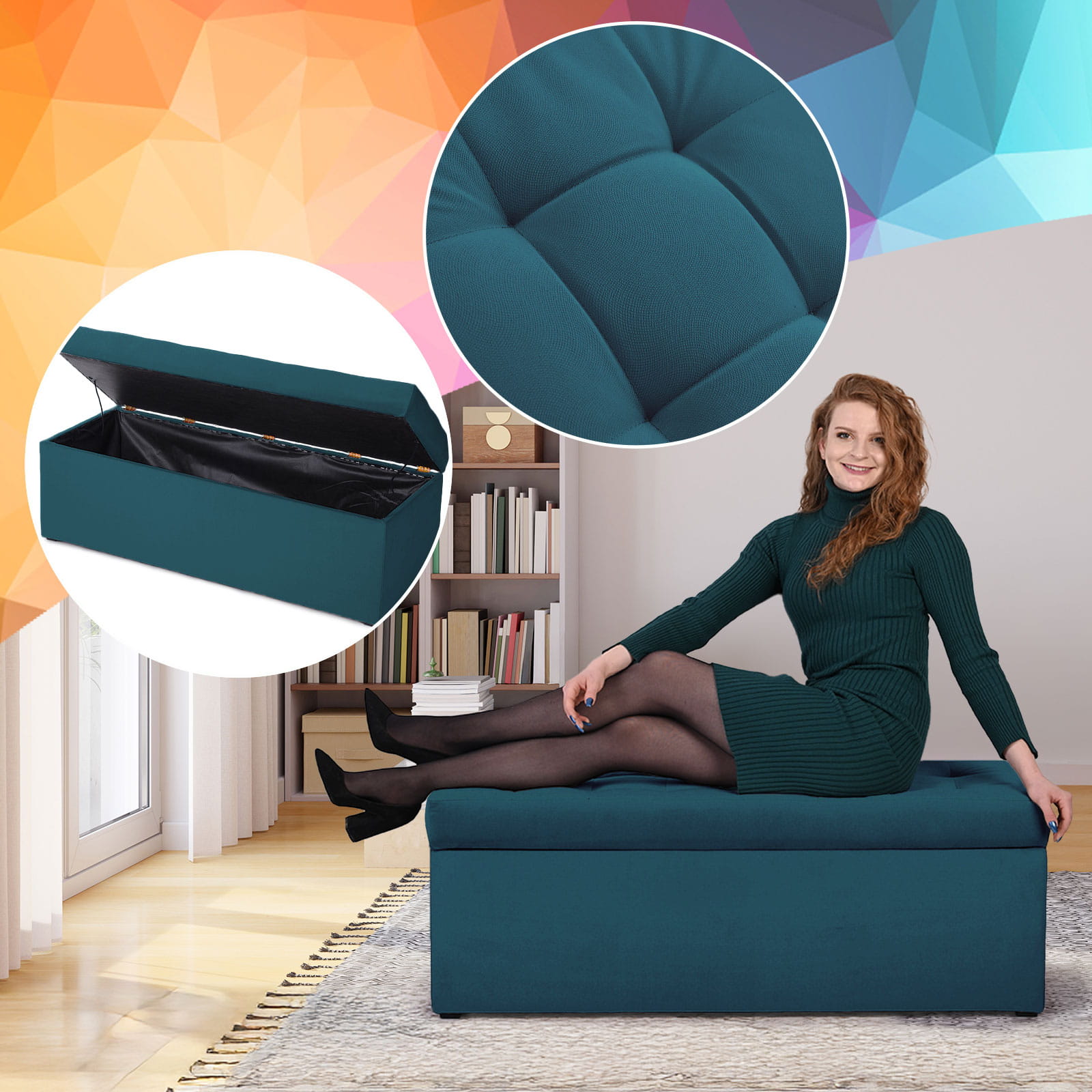 Čalouněný taburet s prostorným úložným prostorem je elegantním a praktickým doplňkem každého interiéru. Je pevně vyroben s důrazem na detaily a zajišťuje pohodlí a odolnost při každodenním používání. Měkké sedadlo s jemným prošíváním dodává styl a funkčnost úložného prostoru umožňuje ukládání drobných předmětů, jako jsou deky, polštáře nebo časopisy. Pufa se skvěle hodí do obývacího pokoje, ložnice i předsíně a je dokonalým spojením estetiky a užitečnosti – ideální pro ty, kteří hledají nábytek kombinující styl a funkčnost.