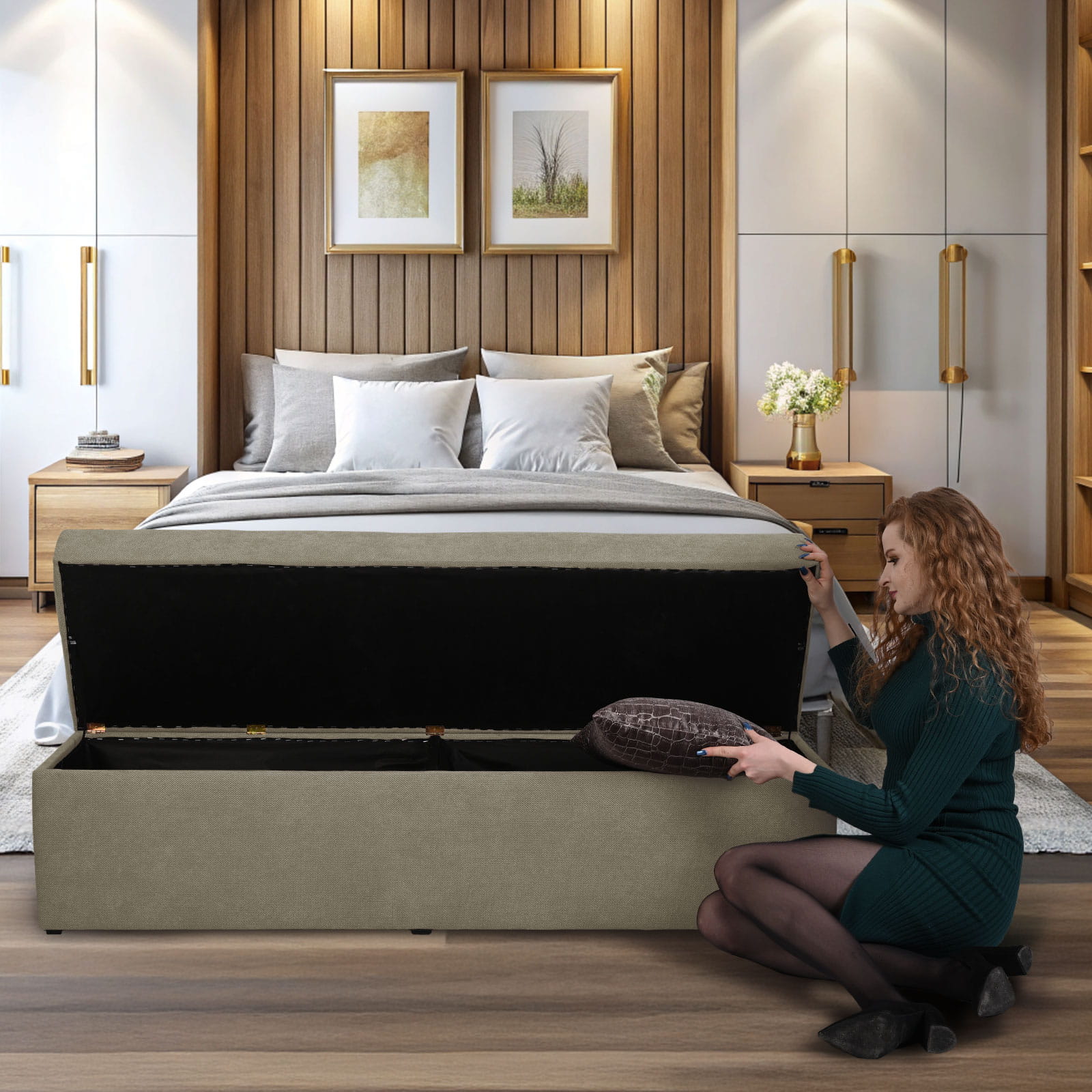 Pufa je kombinací elegance a pohodlí. Byla navržena s ohledem na nejnáročnější uživatele. Je vyrobena s velkou přesností, což zajišťuje estetický a stylový vzhled. Díky funkci otevírání můžete v truhle uložit nejdůležitější věci – je ideální jako úložný prostor, sedátko nebo podnožka.
