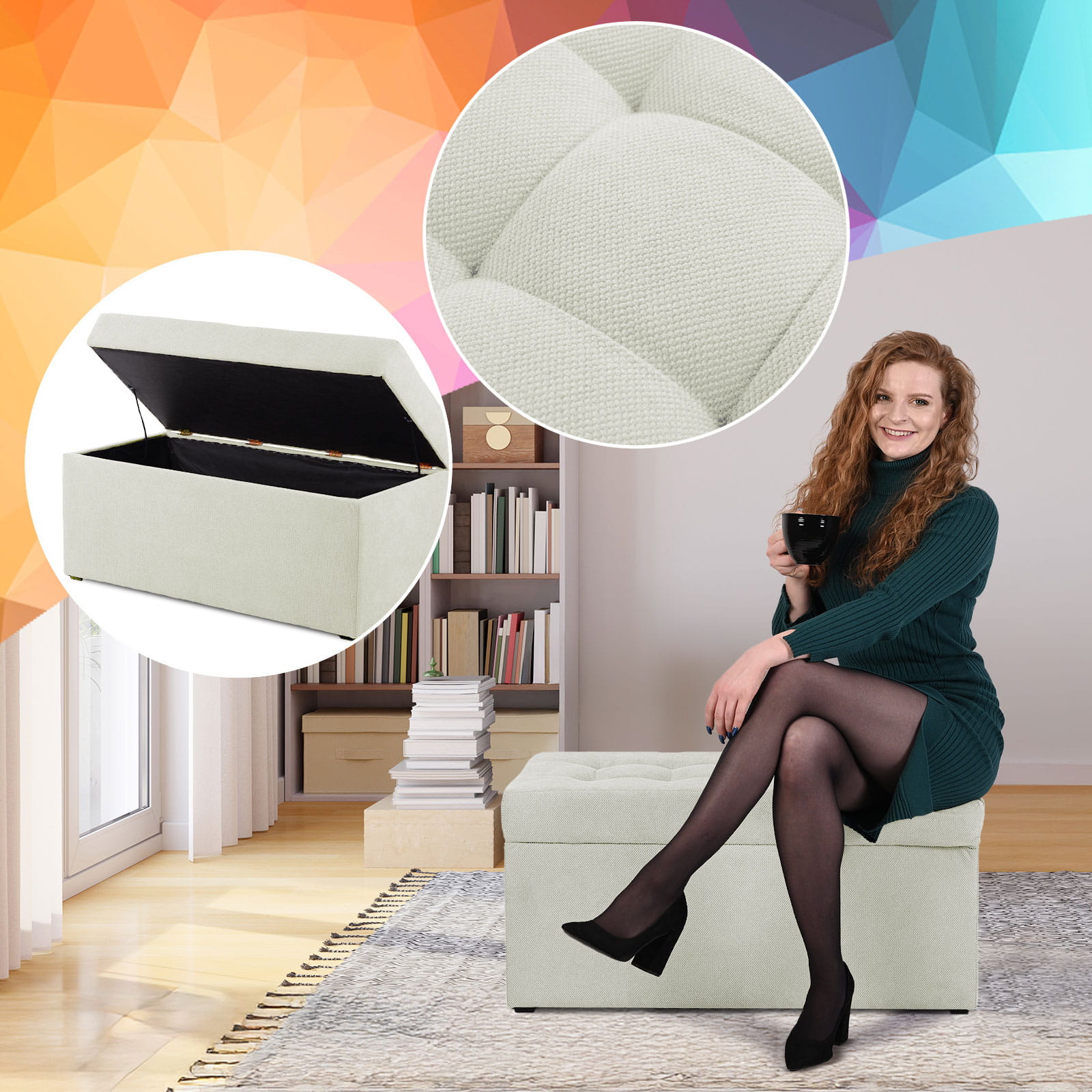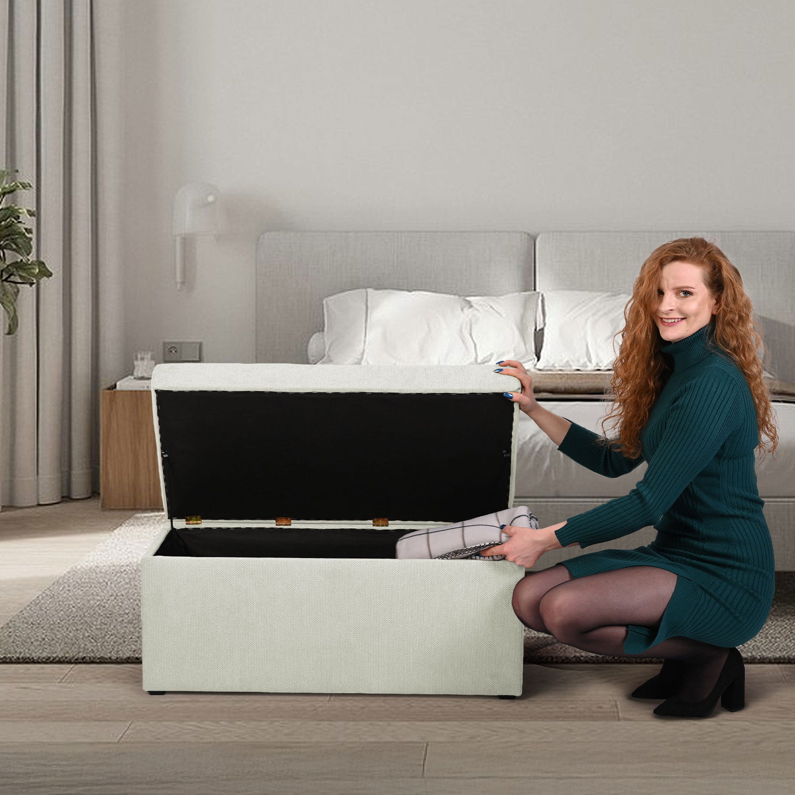 Pufa je kombinací elegance a pohodlí. Byla navržena s ohledem na nejnáročnější uživatele. Je vyrobena s velkou přesností, což zajišťuje estetický a stylový vzhled. Díky funkci otevírání můžete v truhle uložit nejdůležitější věci – od textilií po drobné doplňky.