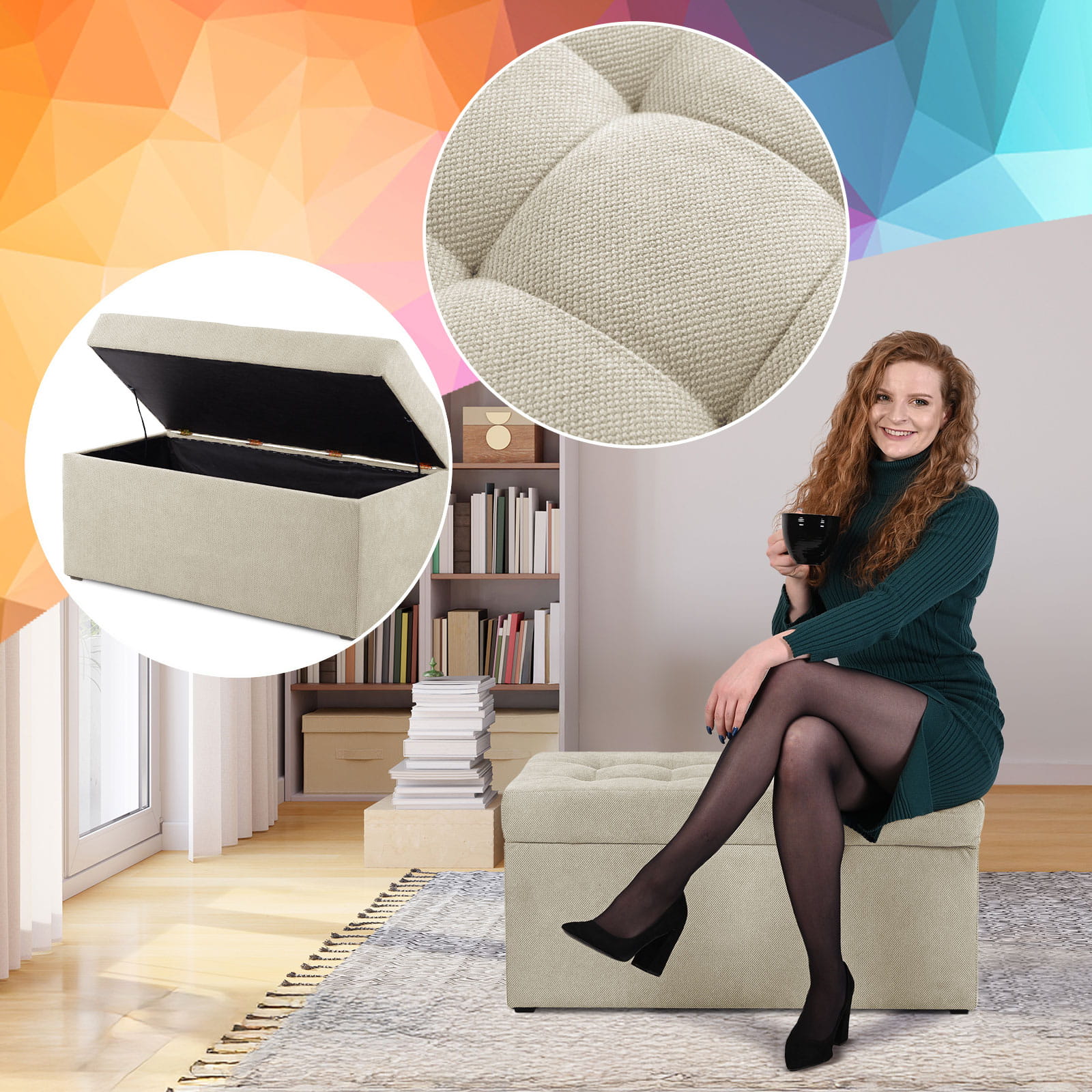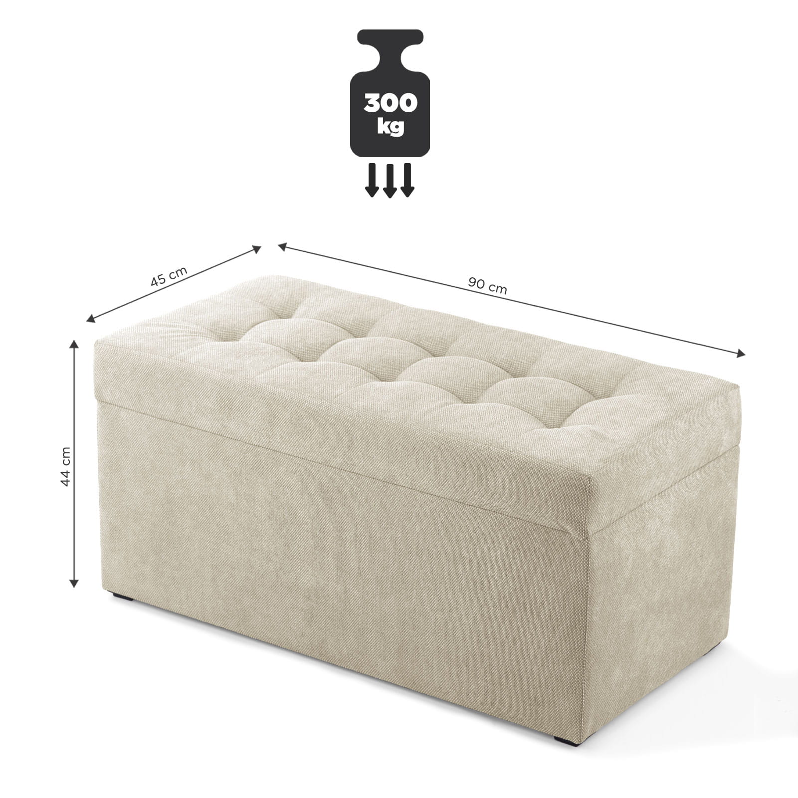 Pufa je kombinací elegance a pohodlí. Byla navržena s ohledem na nejnáročnější uživatele. Je vyrobena s velkou přesností, což zajišťuje estetický a stylový vzhled. Díky funkci otevírání můžete v truhle uložit nejdůležitější věci – od textilií po drobné doplňky.