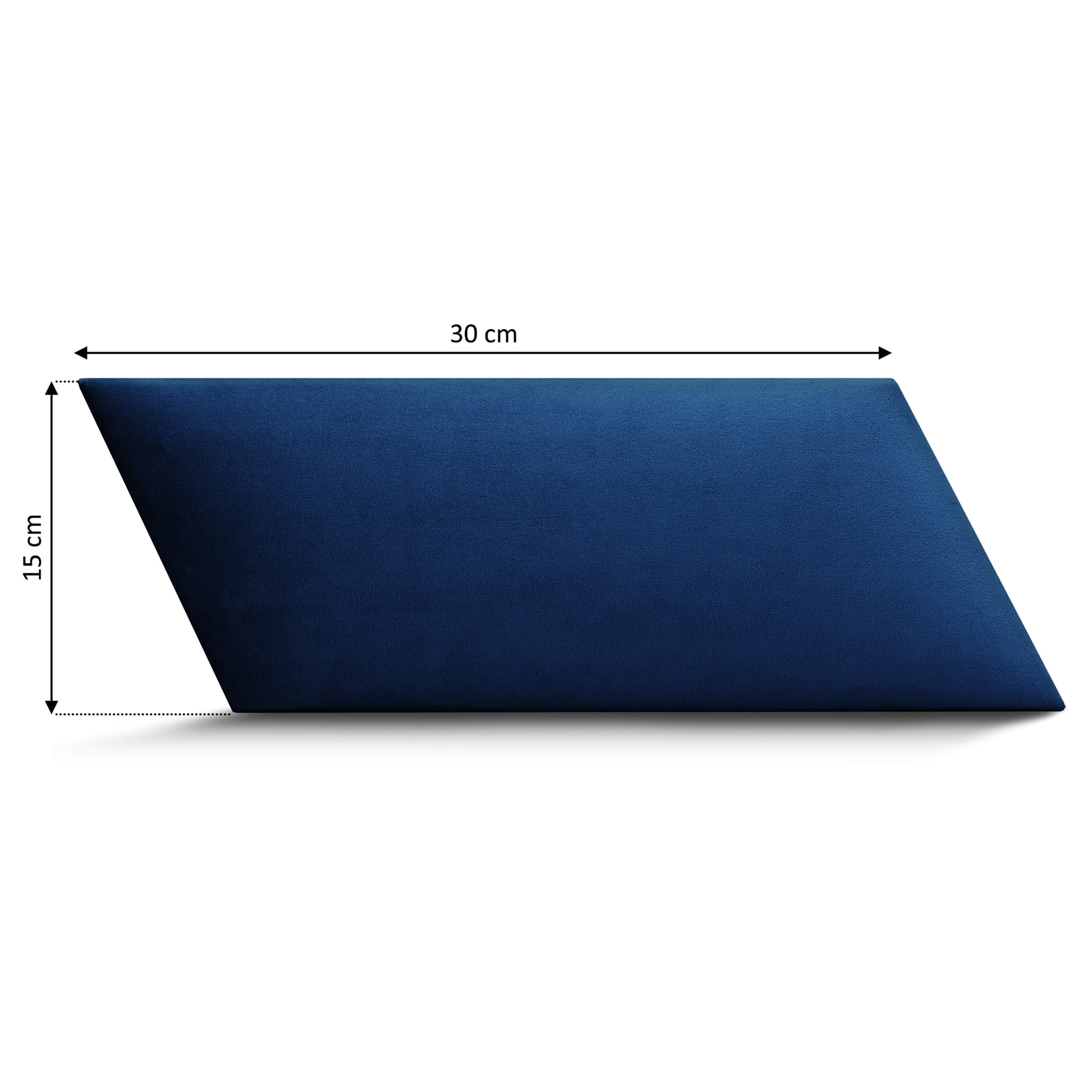 Nástěnný panel 15x30 cm čalouněný kosočtvercem vlevo – Čelo postele v tmavě modré velurové látce