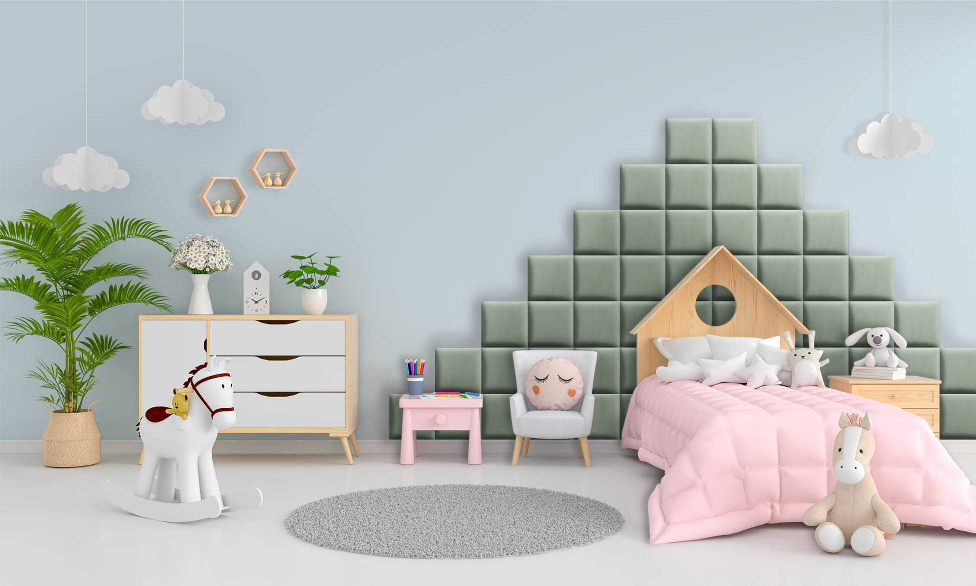 - Dekorace místnosti: Podhlavníky jsou vhodné pro děti i dospělé. Naše panely dodají šarm a útulnost každé místnosti. Kombinujte různé velikosti a barvy a vaše stěna se stane skutečnou ozdobou.