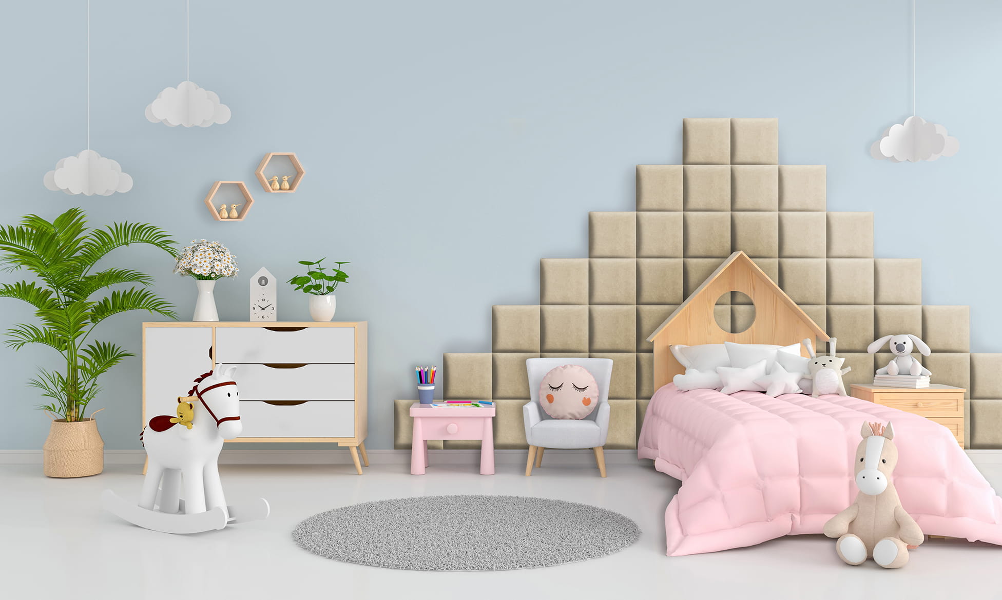- Dekorace místnosti: Podhlavníky jsou vhodné pro děti i dospělé. Naše panely dodají šarm a útulnost každé místnosti. Kombinujte různé velikosti a barvy a vaše stěna se stane skutečnou ozdobou.