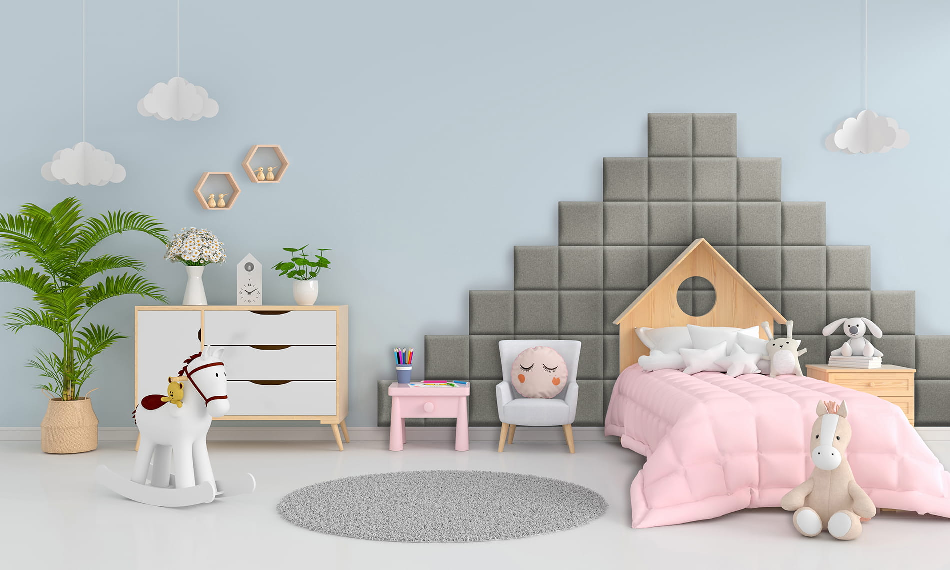 - Odhlučnění místnosti. Potřebujete odhlučnit stěnu v ložnici nebo dětském pokoji? Díky funkci pohlcování zvuku se k tomu naše panely skvěle hodí.