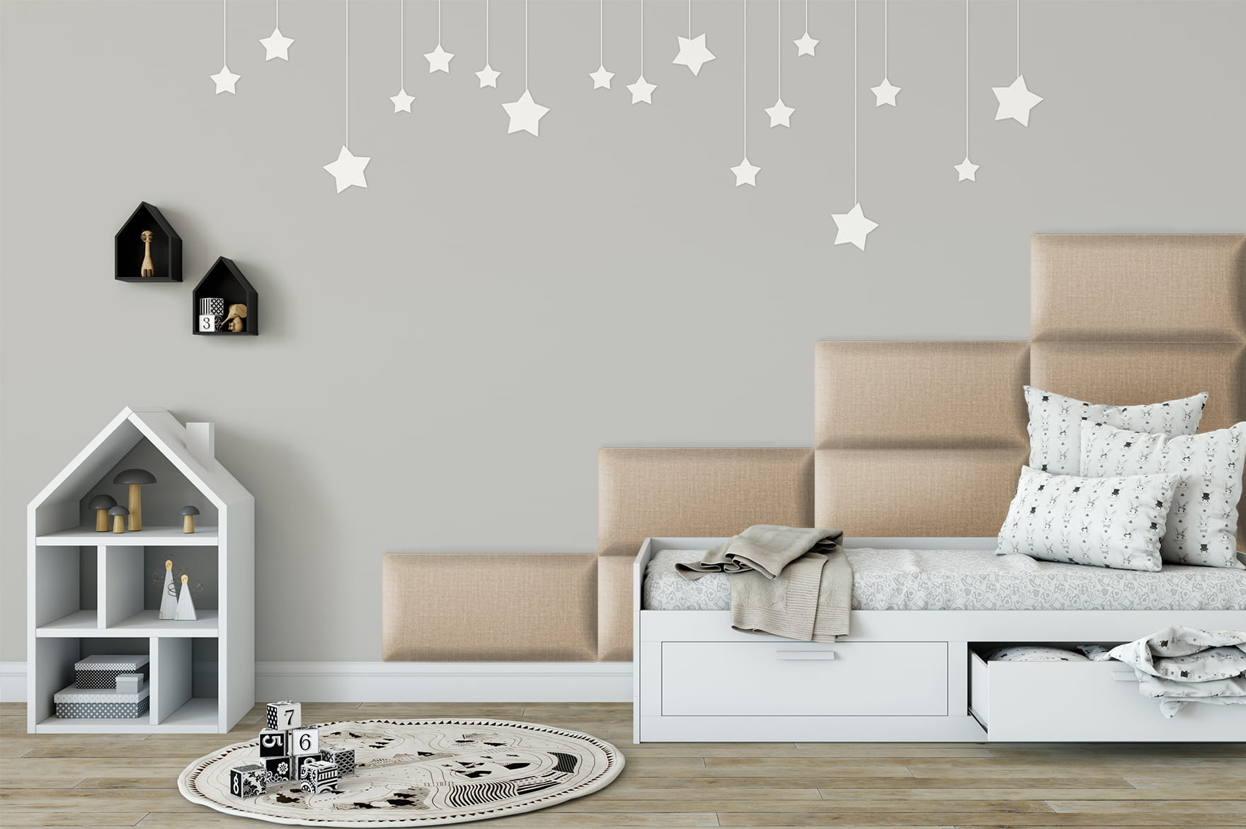 - Odhlučnění místnosti. Potřebujete odhlučnit stěnu v ložnici nebo dětském pokoji? Díky funkci pohlcování zvuku se k tomu naše panely skvěle hodí.