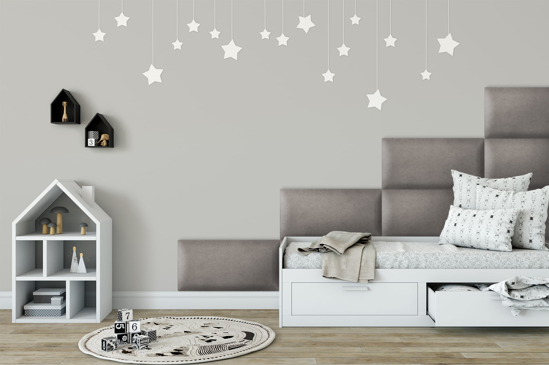 - Dekorace místnosti: Podhlavníky jsou vhodné pro děti i dospělé. Naše panely dodají šarm a útulnost každé místnosti. Kombinujte různé velikosti a barvy a vaše stěna se stane skutečnou ozdobou.