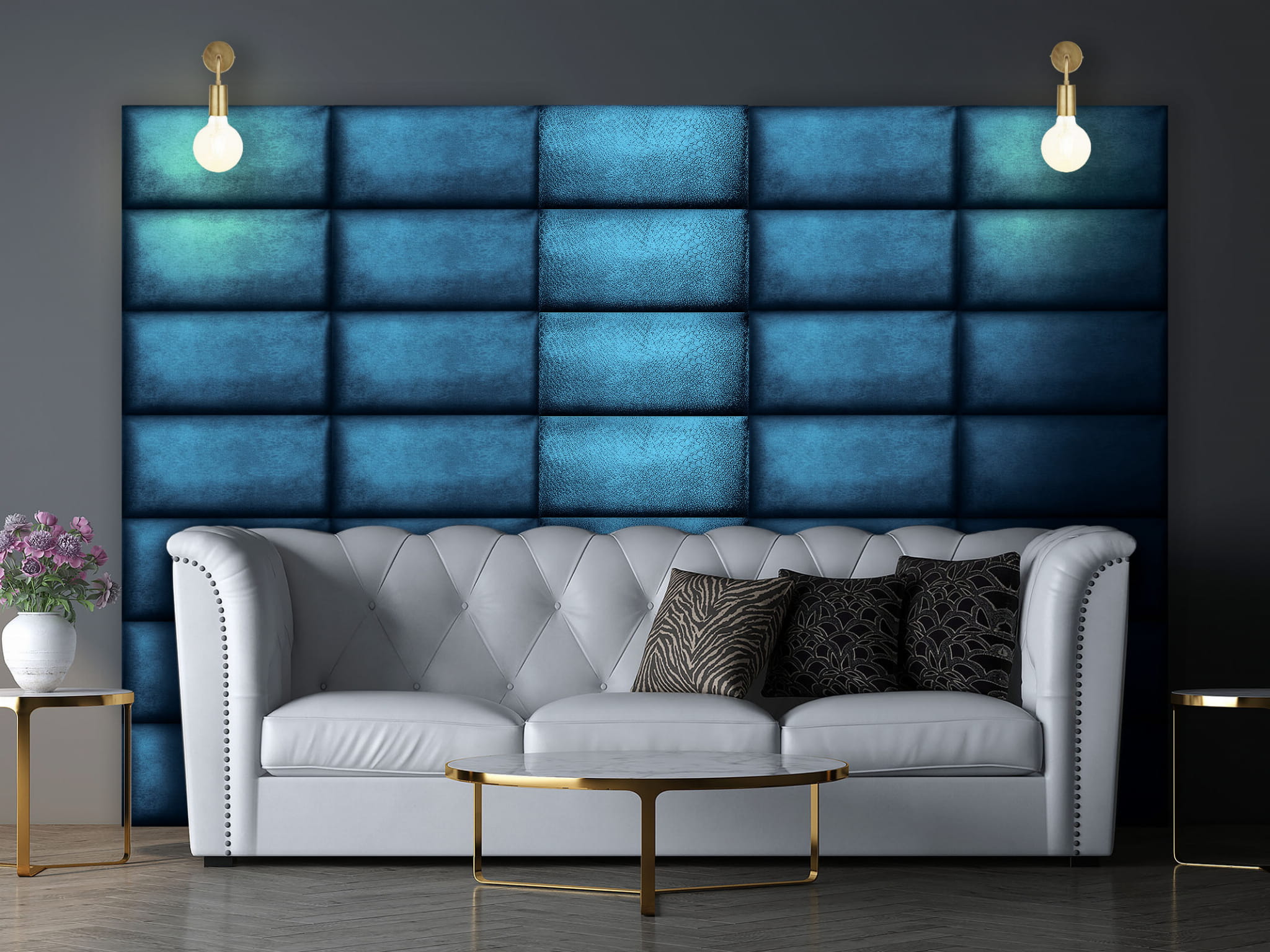 Nástěnný panel 30x60 cm čalouněný - čelo prémiové v modré lesklé velurové látce