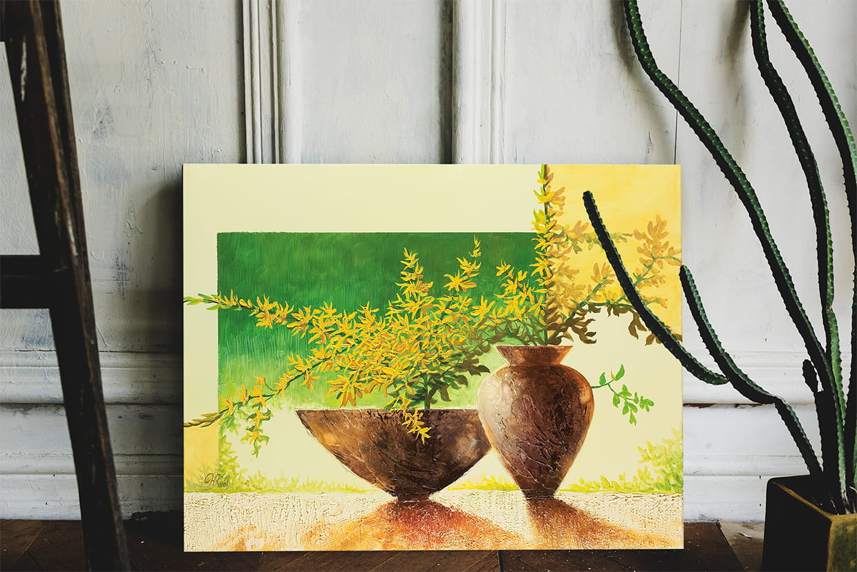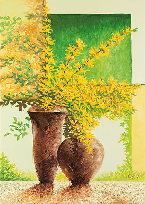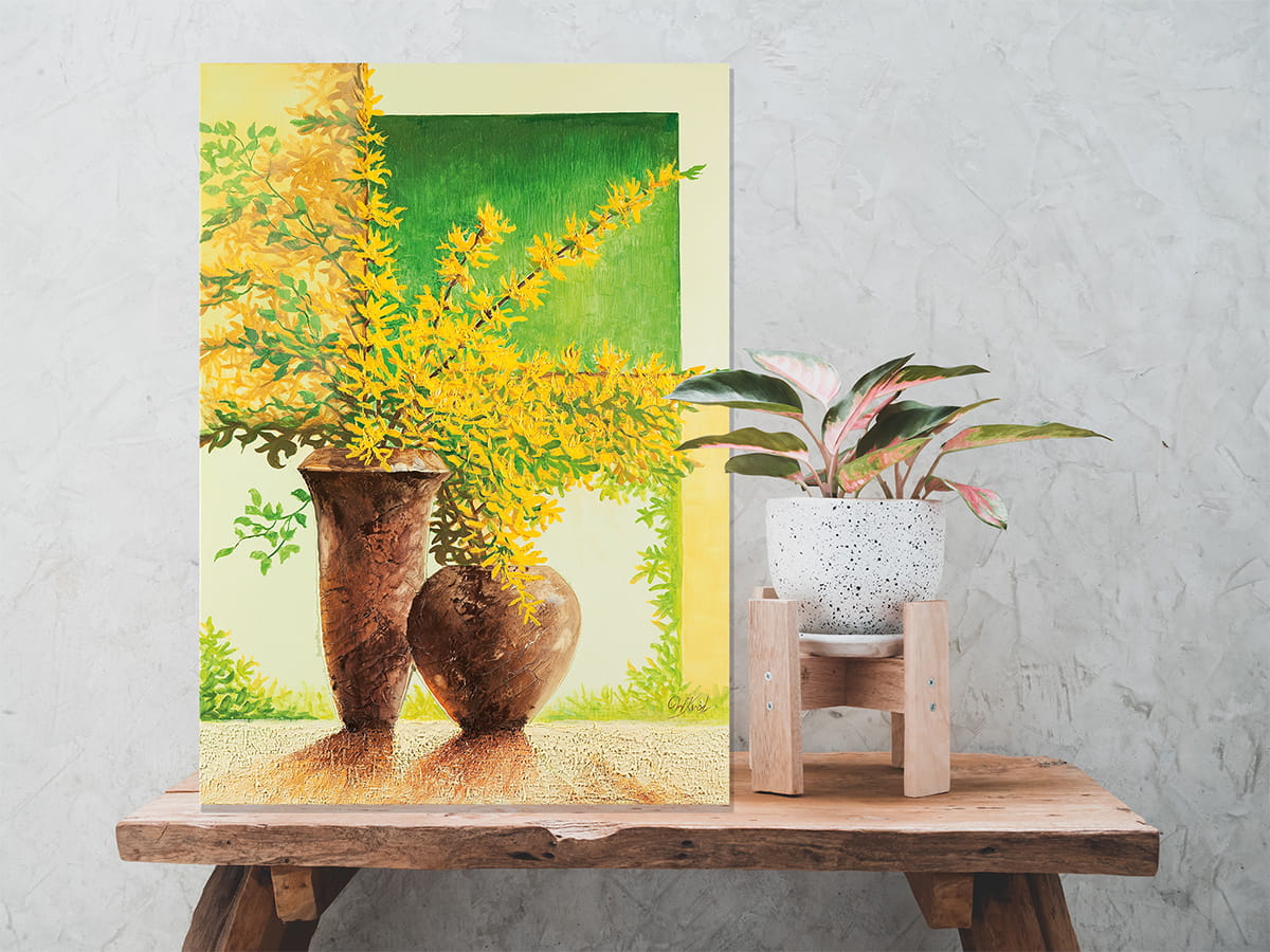 Originální olejomalba na plátně 50x70 cm Forsythia I II King originál