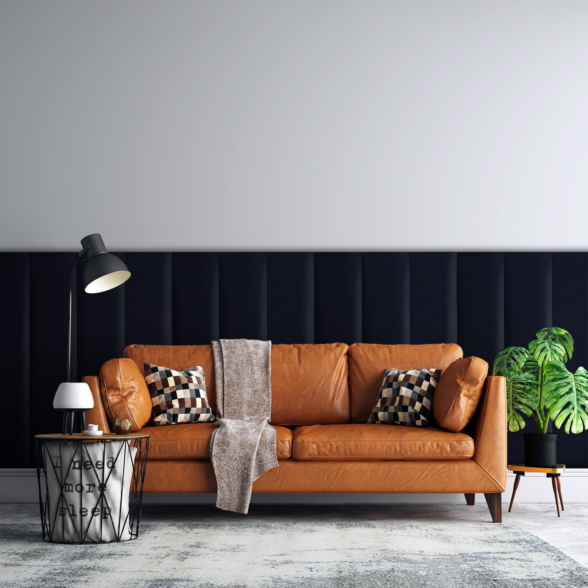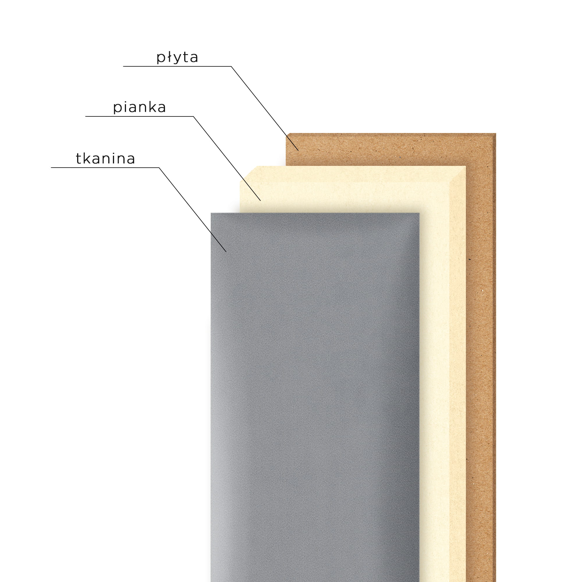 Elegantní vzhled panelu je dán použitím vysoce kvalitní čalounické látky, která má jemný, sametový nádech. Pevná konstrukce panelu je založena na nábytkové desce, která zajišťuje stabilitu a odolnost, a montáž na stěnu se provádí pomocí lepidla nebo suchého zipu.