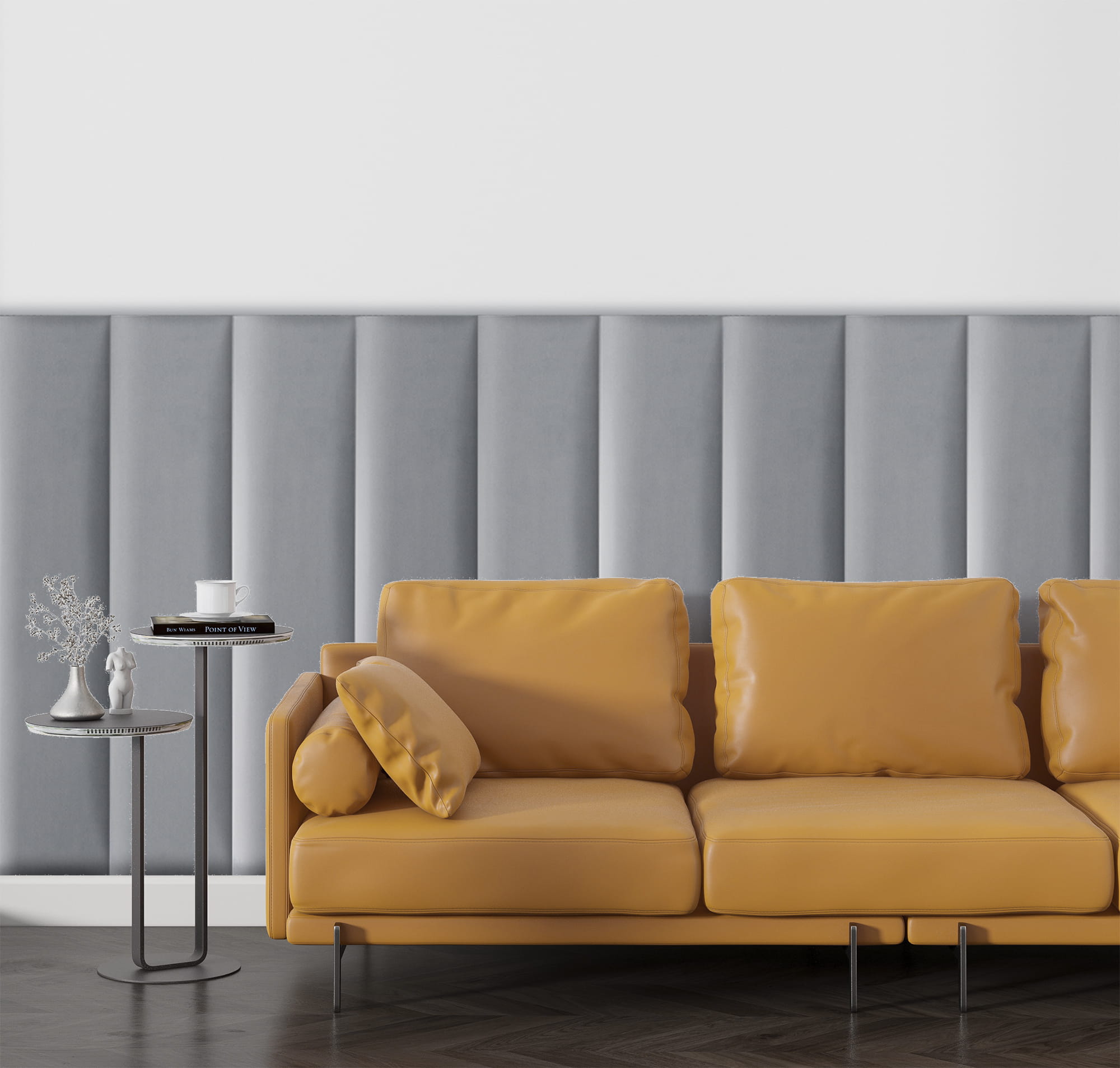 Elegantní vzhled panelu je dán použitím vysoce kvalitní čalounické látky, která má jemný, sametový nádech. Pevná konstrukce panelu je založena na nábytkové desce, která zajišťuje stabilitu a odolnost, a montáž na stěnu se provádí pomocí lepidla nebo suchého zipu.