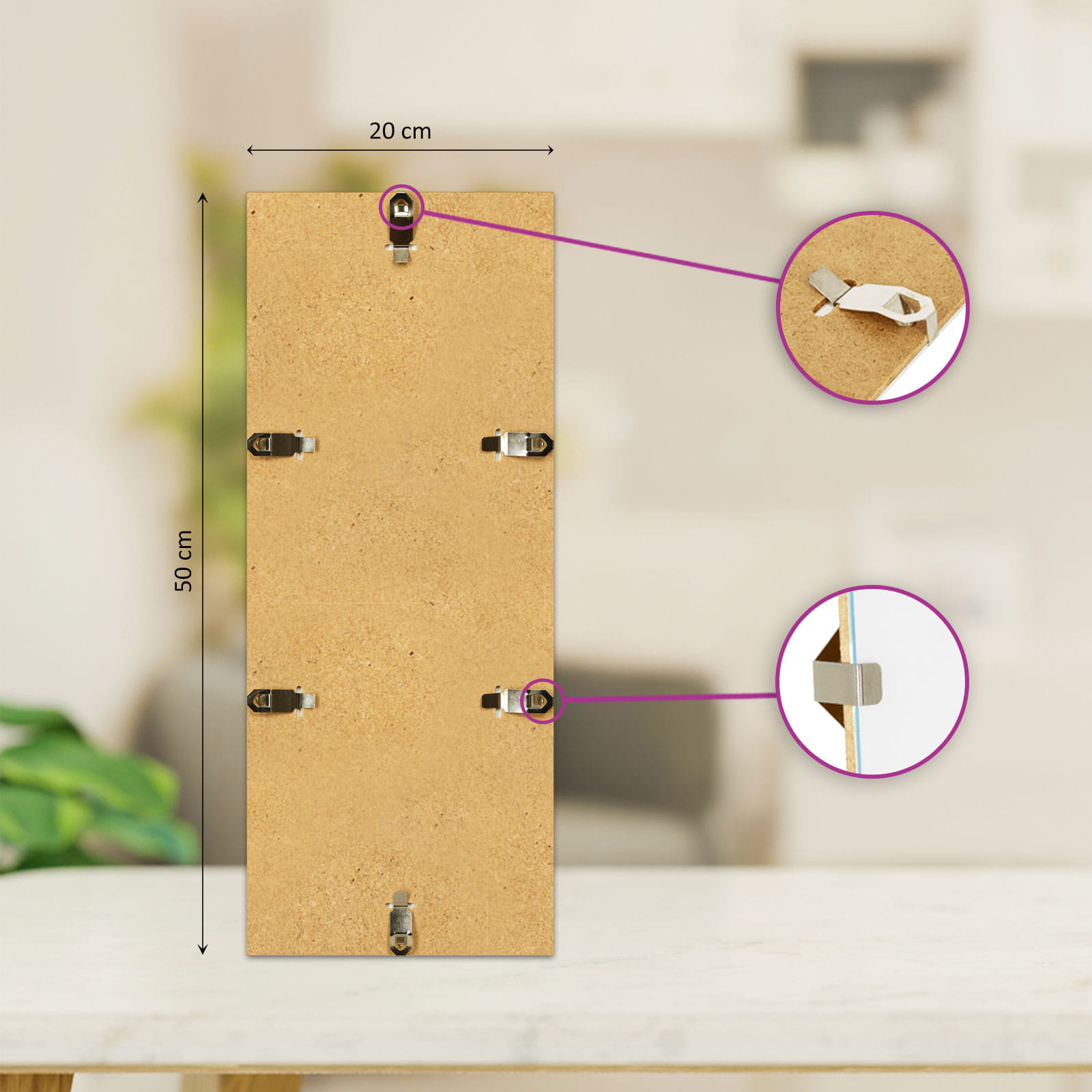 Klipy jsou silné a vyztužené, díky čemuž se neohýbají a zajišťují, že plexisklo perfektně přiléhá k desce. To zajišťuje stabilitu fotografií a plakátů v rámečku.