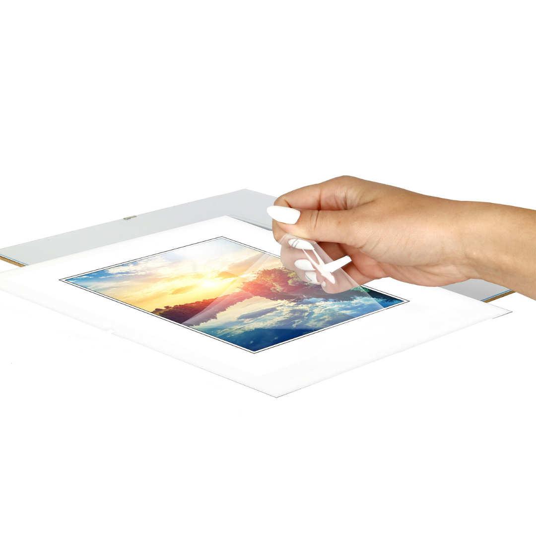 Vysoce kvalitní plexisklo namísto skla. Prodlužuje životnost rámečku, zajišťuje průhlednost skla a navíc je bezpečné díky své odolnosti proti rozbití. Plexisklo o tloušťce 0,85 mm je ideálním řešením pro rámečky. Další výhodou plexiskla je snížení hmotnosti celého rámečku.