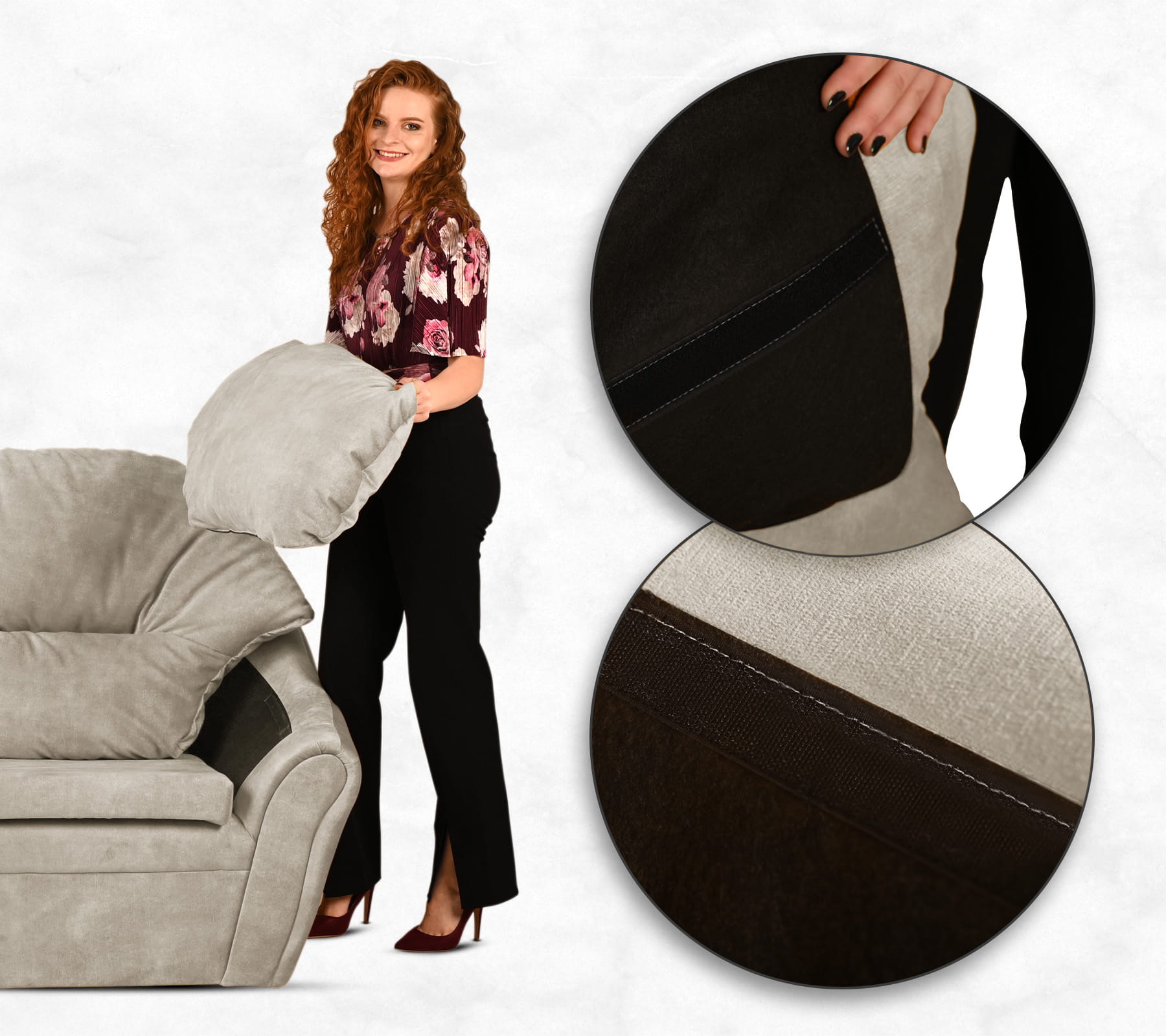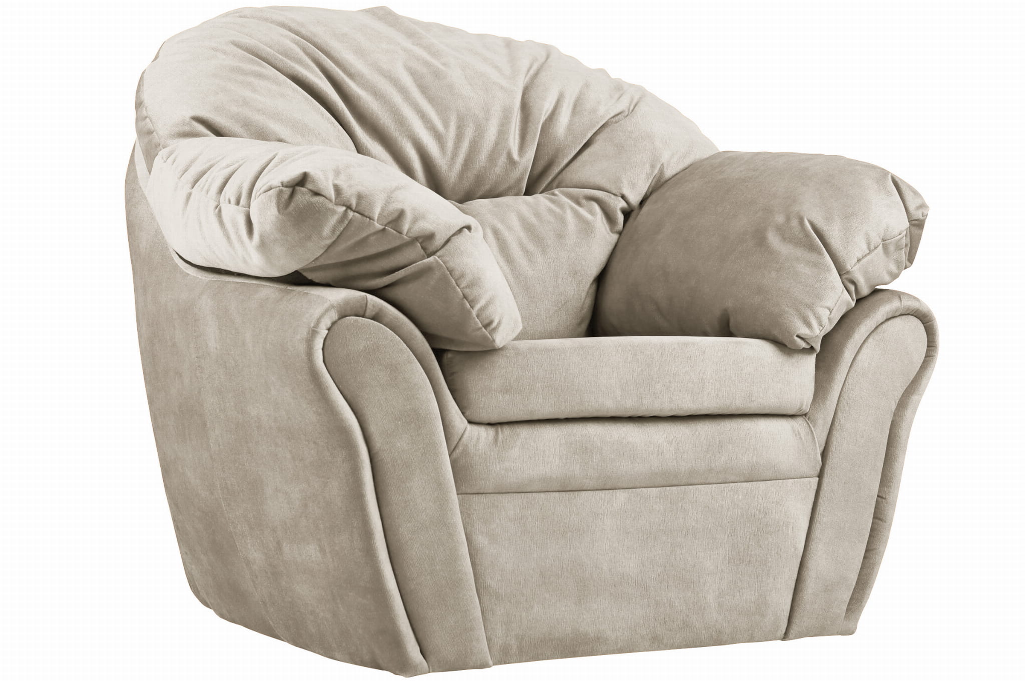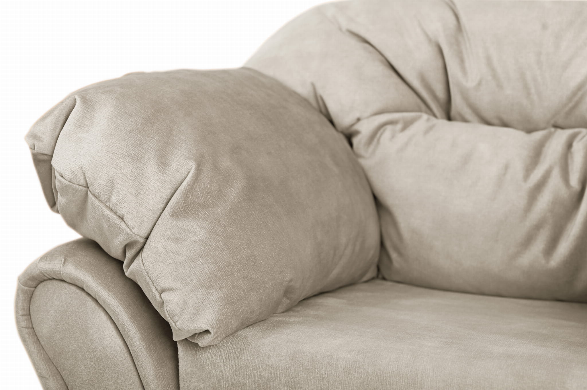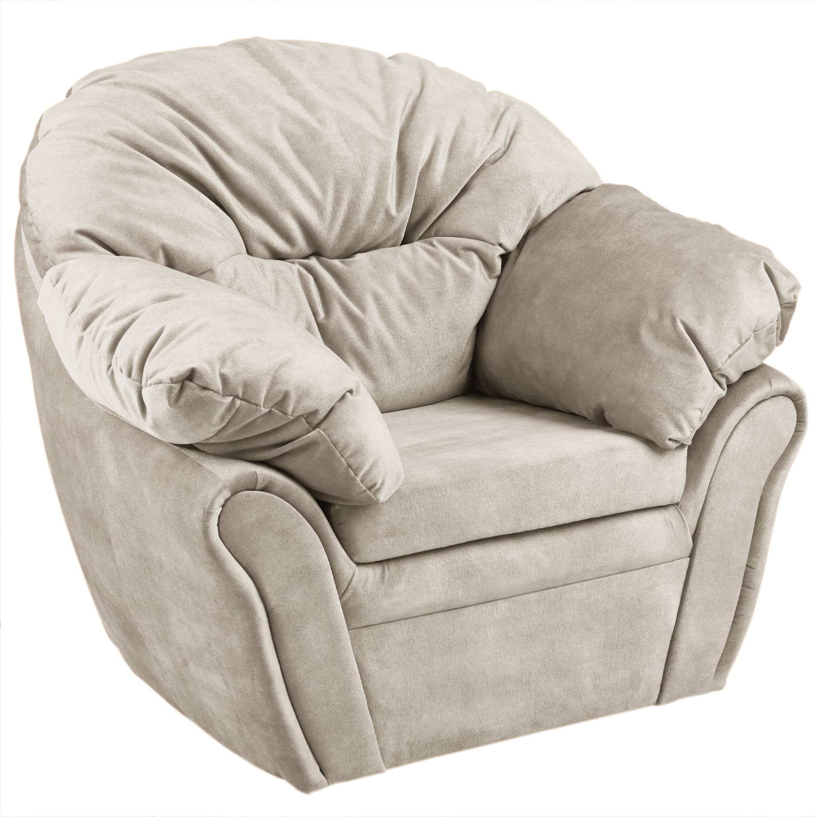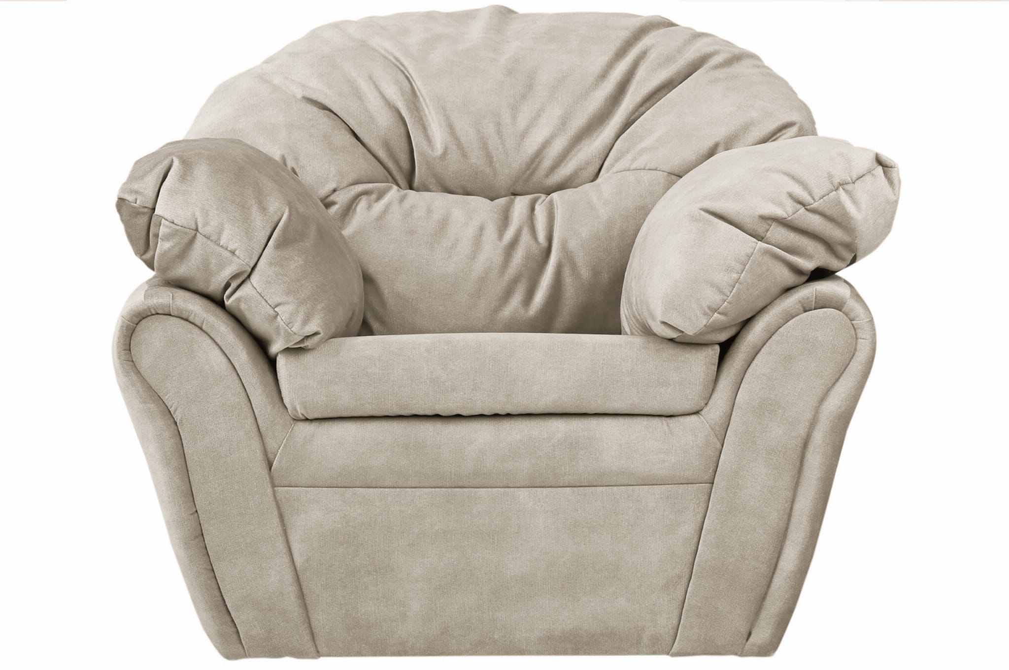 Plyšové, měkké křeslo Irma z velurové látky v béžové barvě s opěradlem a područkami na suchý zip