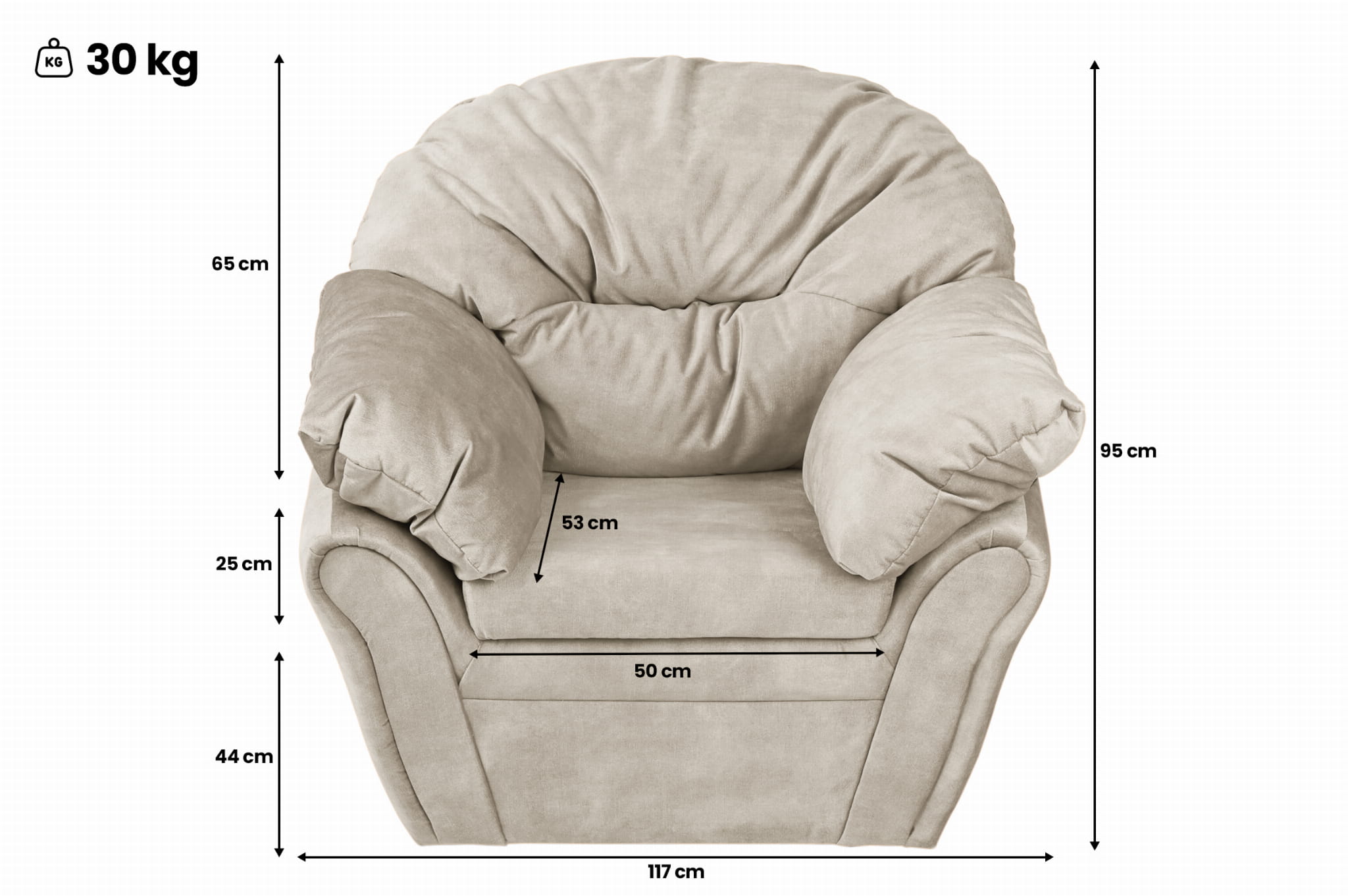 - výplňpodruček a opěradla - nadýchaný oves zajišťující nejvyšší komfort používání,