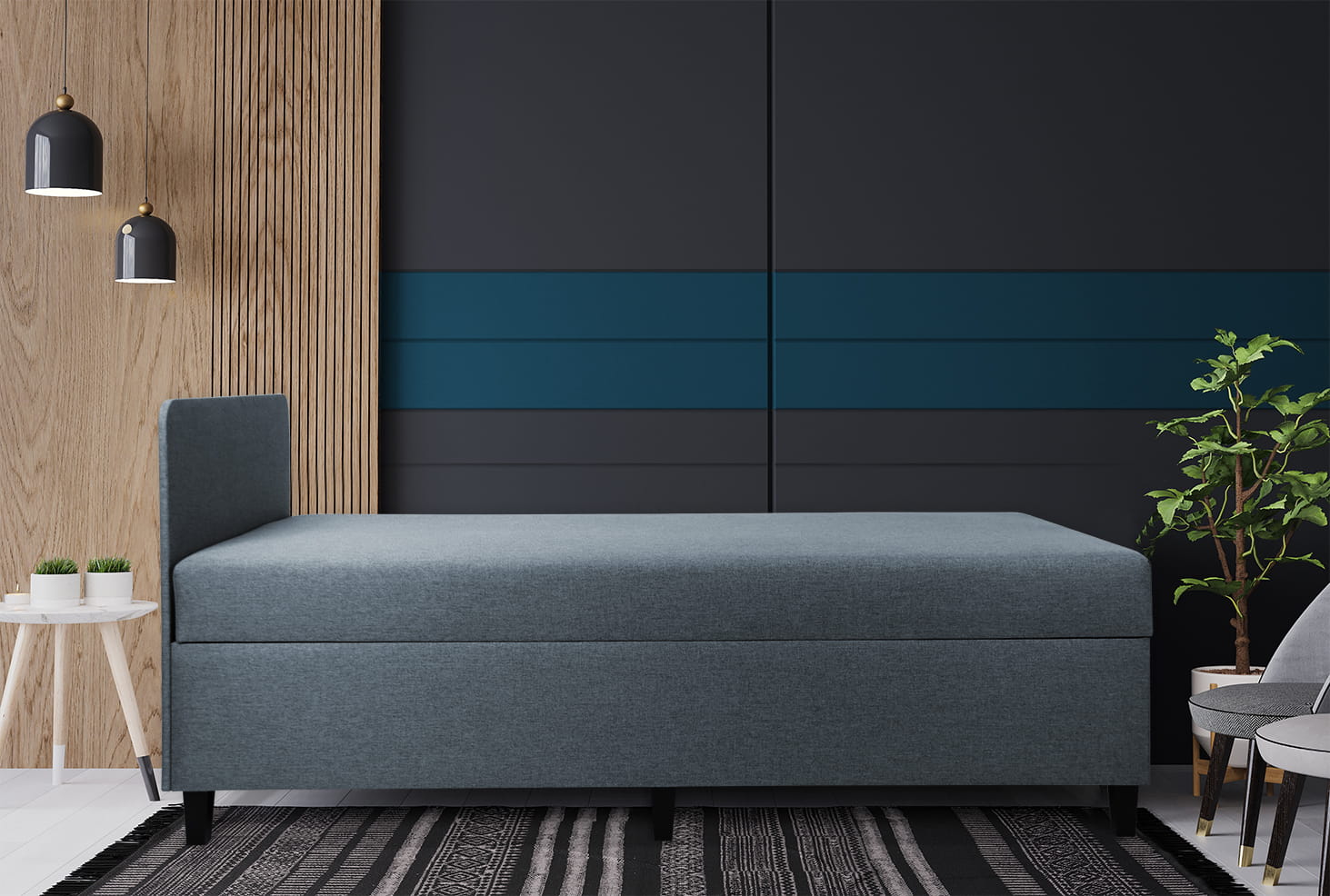 Pohovka IGOR 100×200 cm s úložným boxem v modrošedé barvě