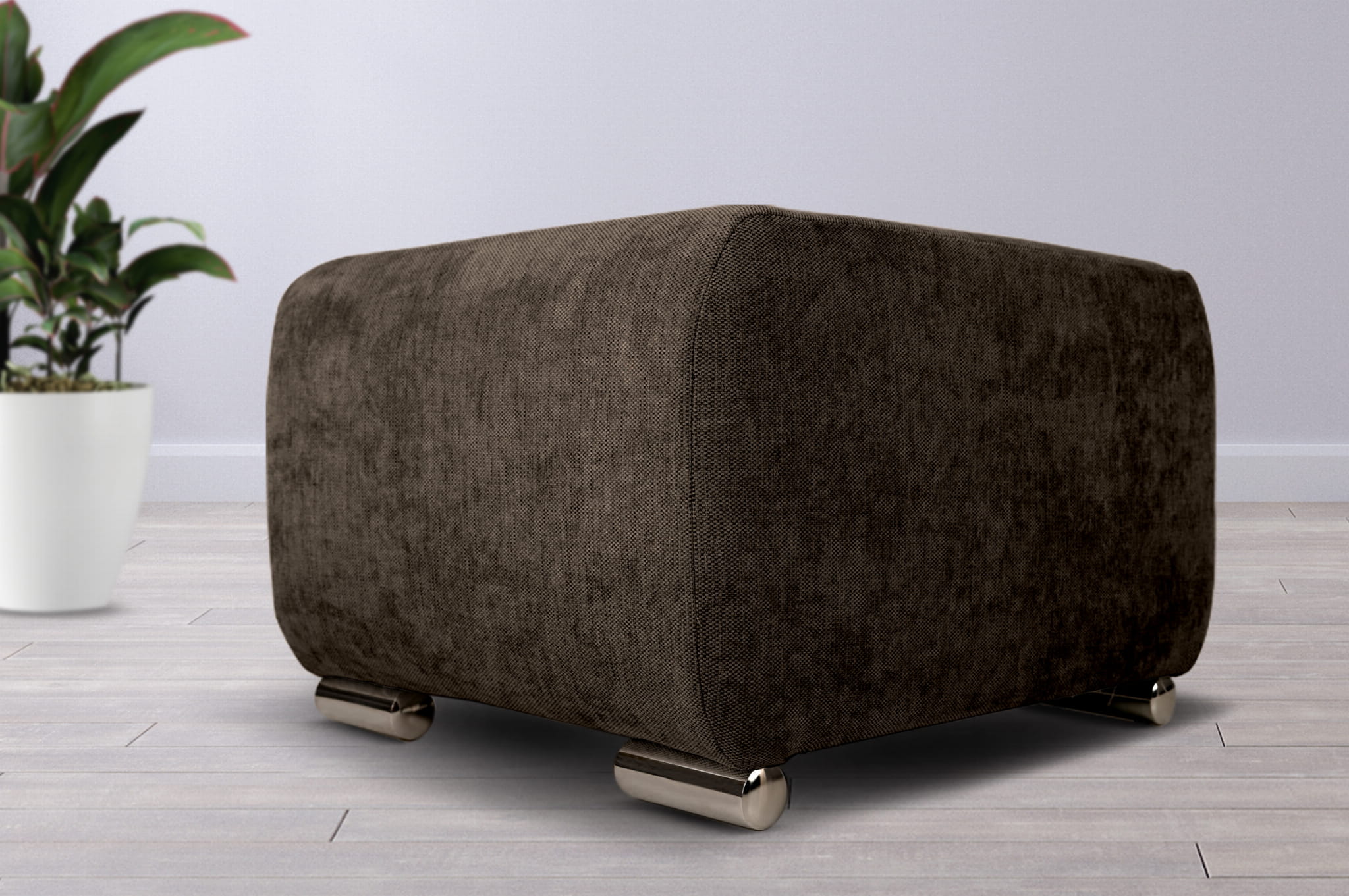 Puf MILAN v hnědé barvě se stříbrnými nožkami