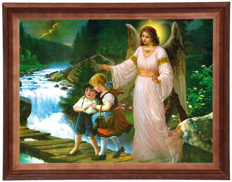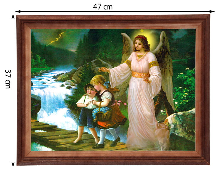 Reprodukce v dřevěném rámu o velikosti 30x40 cm s náboženskou tematikou - Anděl strážný
