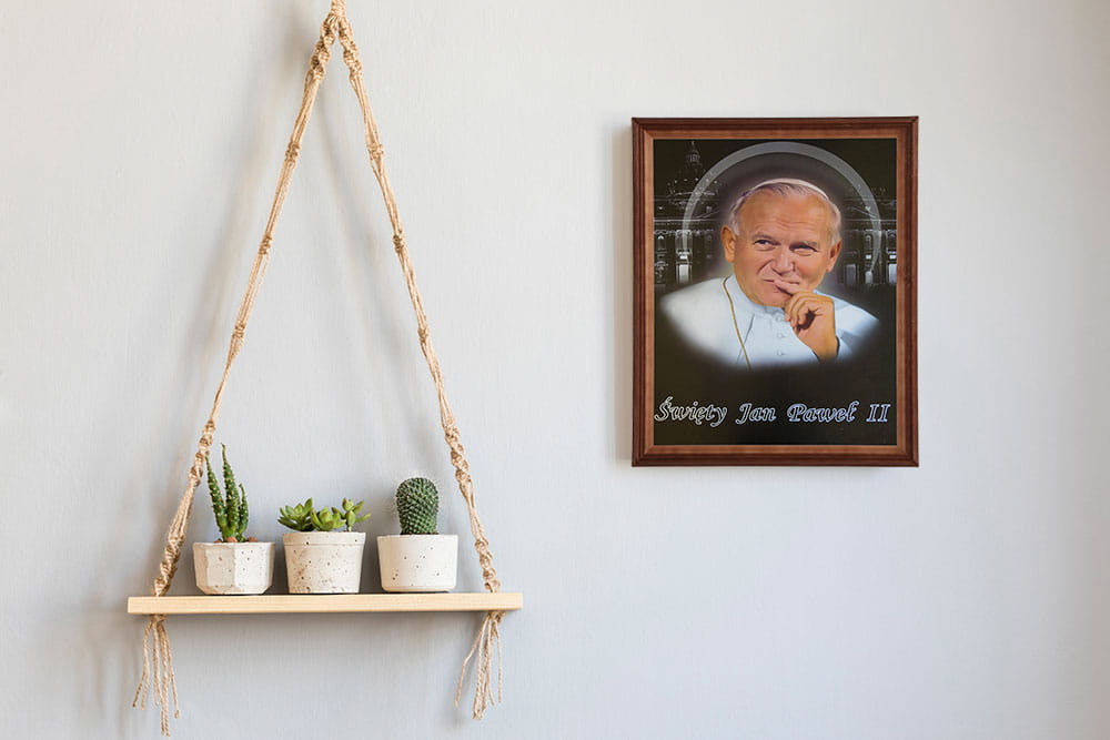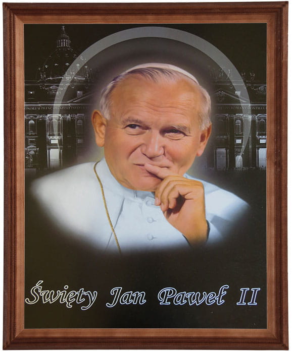 Reprodukce v dřevěném rámu o velikosti 40x50 cm s náboženskou tematikou - Jan Pavel II.