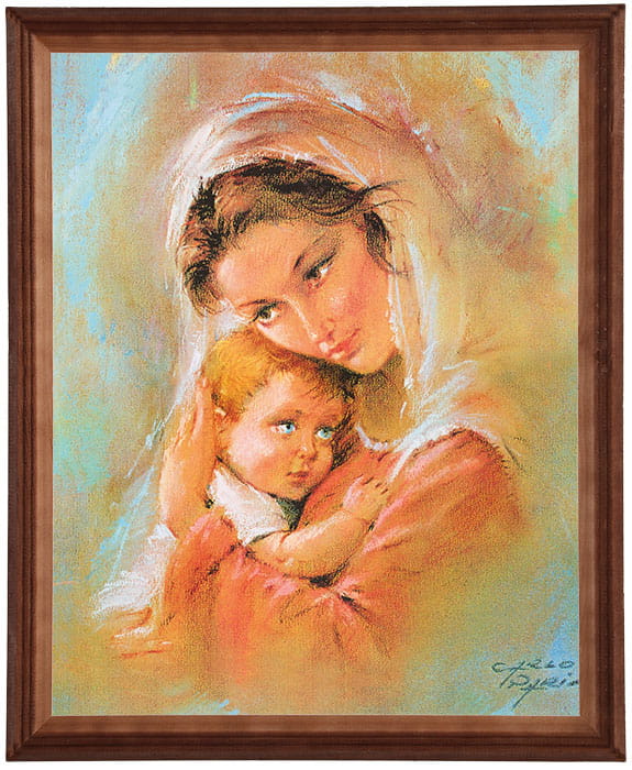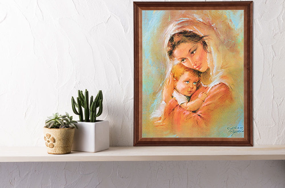 Reprodukce v dřevěném rámu o velikosti 40x50 cm s náboženskou tematikou - Panna Marie