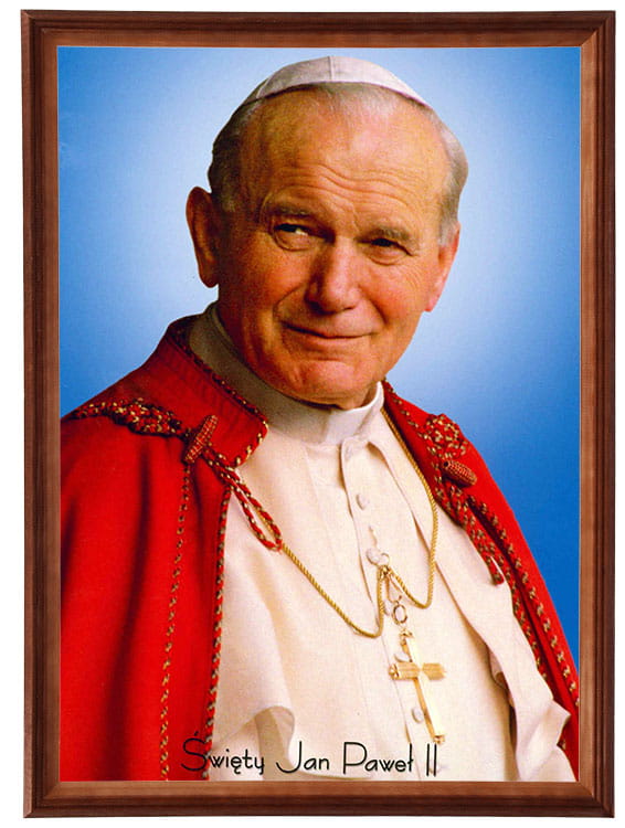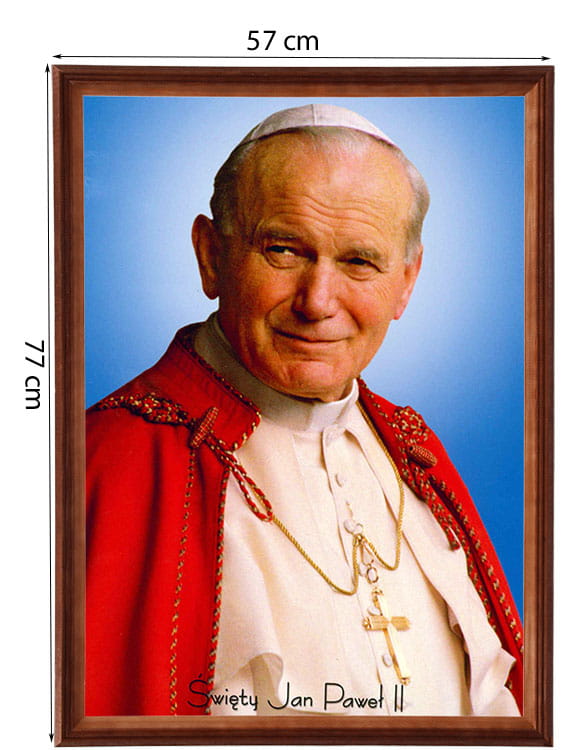 Reprodukce v dřevěném rámu o velikosti 50x70 cm s náboženskou tematikou – Jan Pavel II.