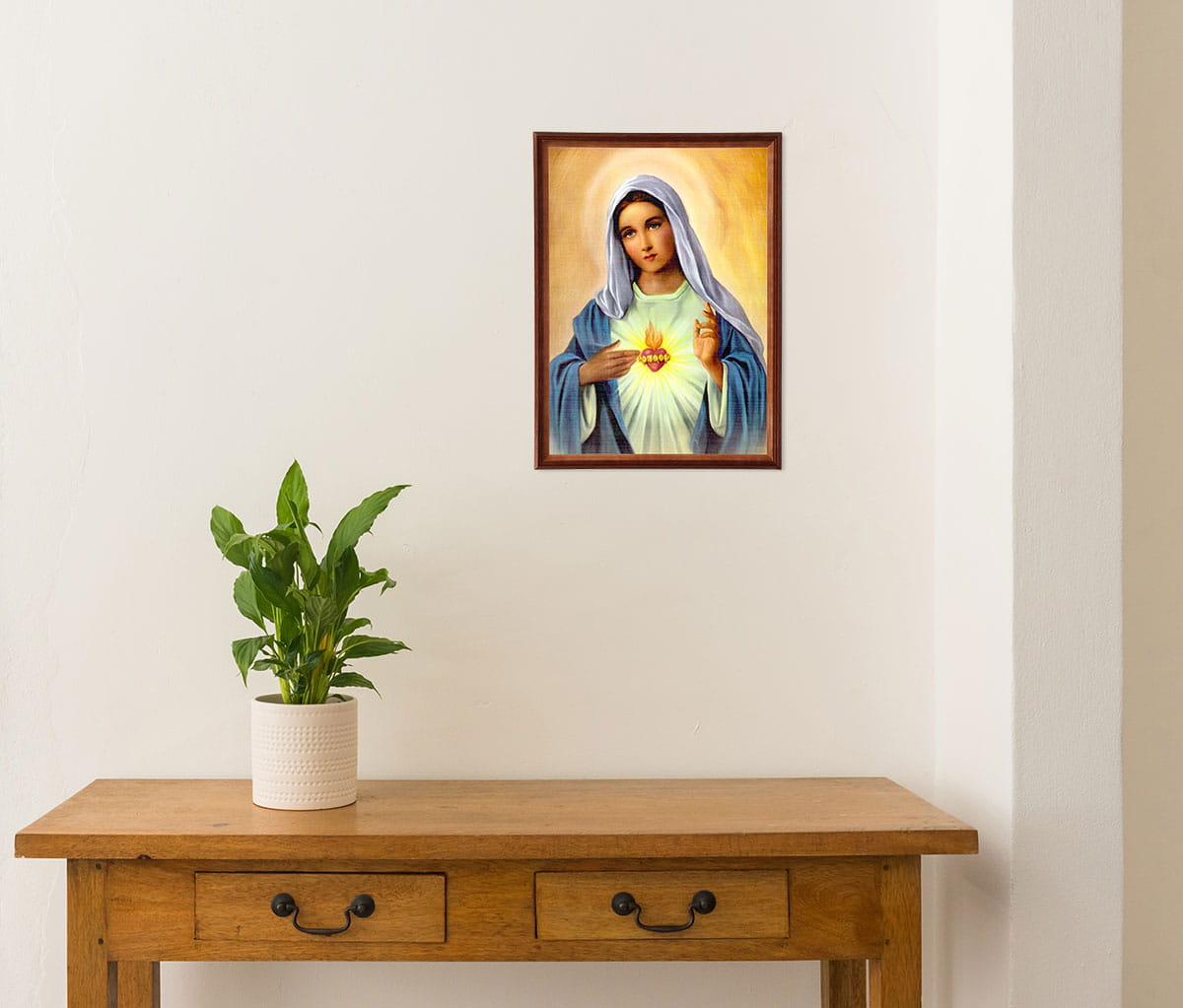 Reprodukce v dřevěném rámu o velikosti 50x70 cm s náboženskou tematikou – Srdce Panny Marie I.