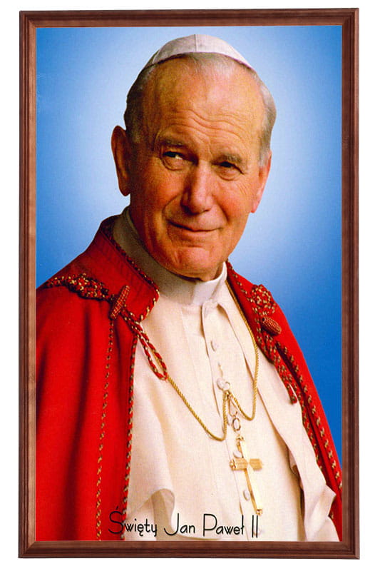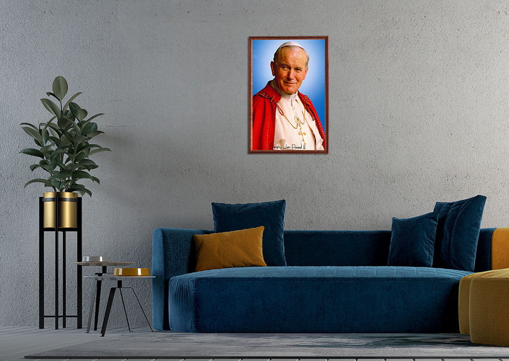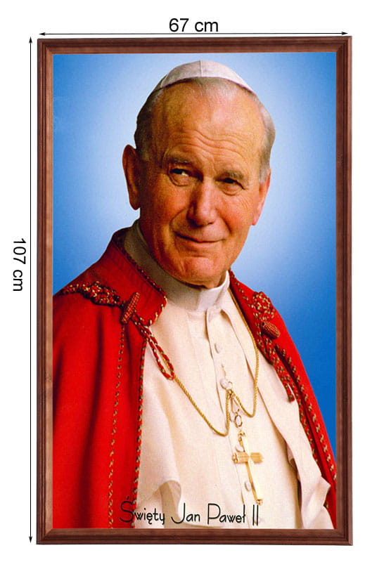 Reprodukce v dřevěném rámu o velikosti 60x100 cm s náboženskou tematikou – Jan Pavel II.