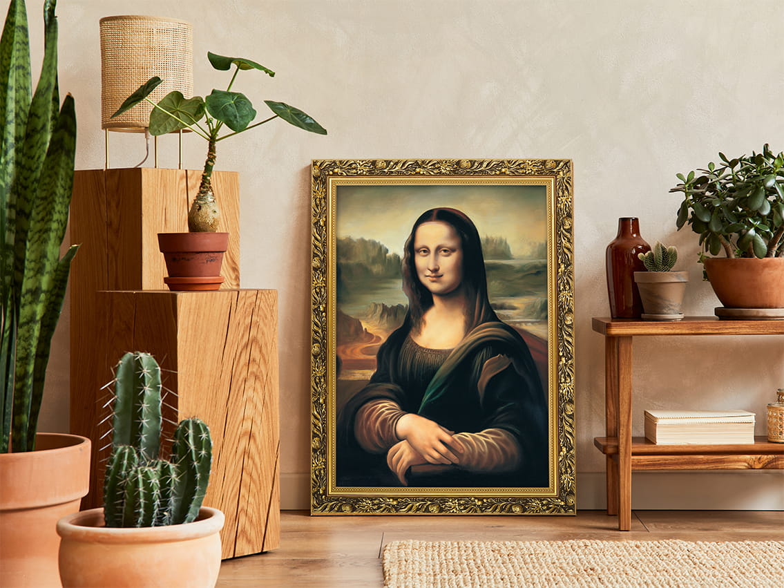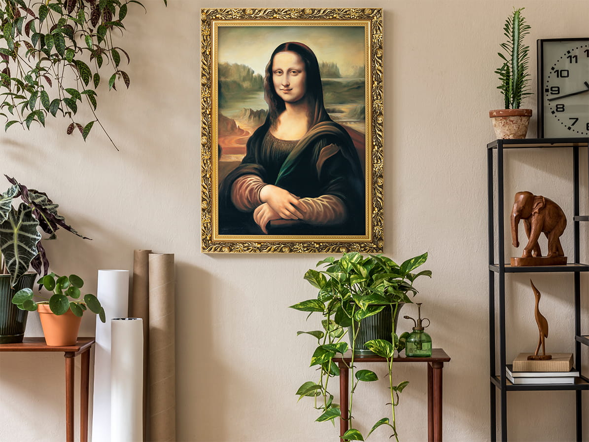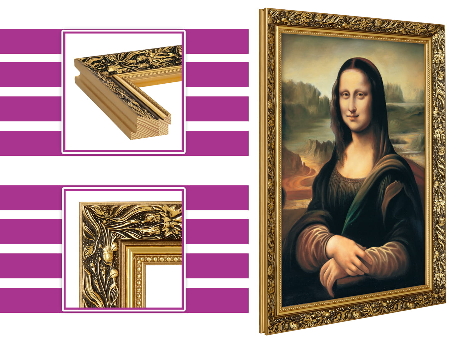 Reprodukce obrazu ve zlatém rámu Makový dort ve velikosti 50x70 cm - Mona Lisa, Leonardo da Vinci