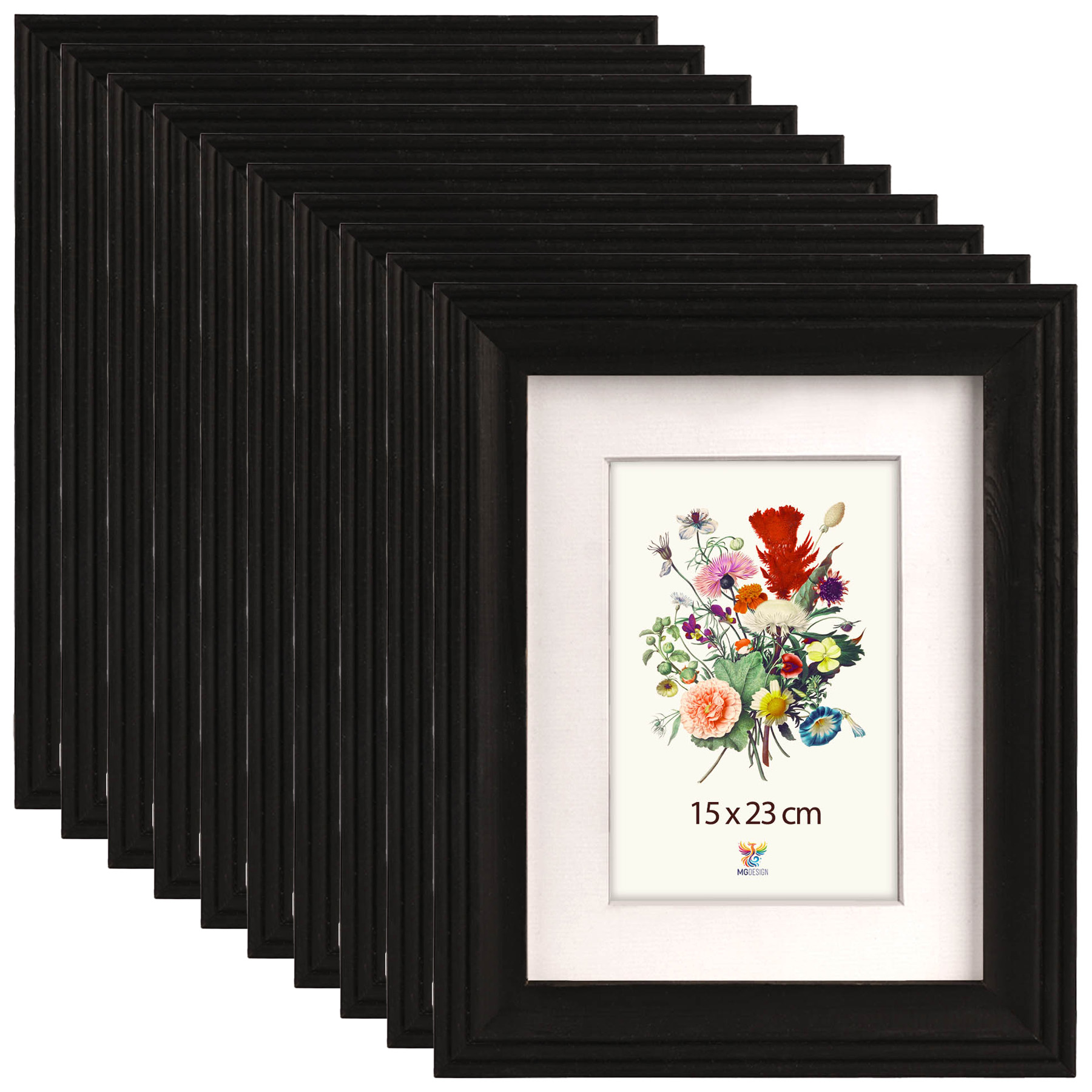 Sada 10 ks frézovaných rámečků 15 x 23 cm v černé barvě
