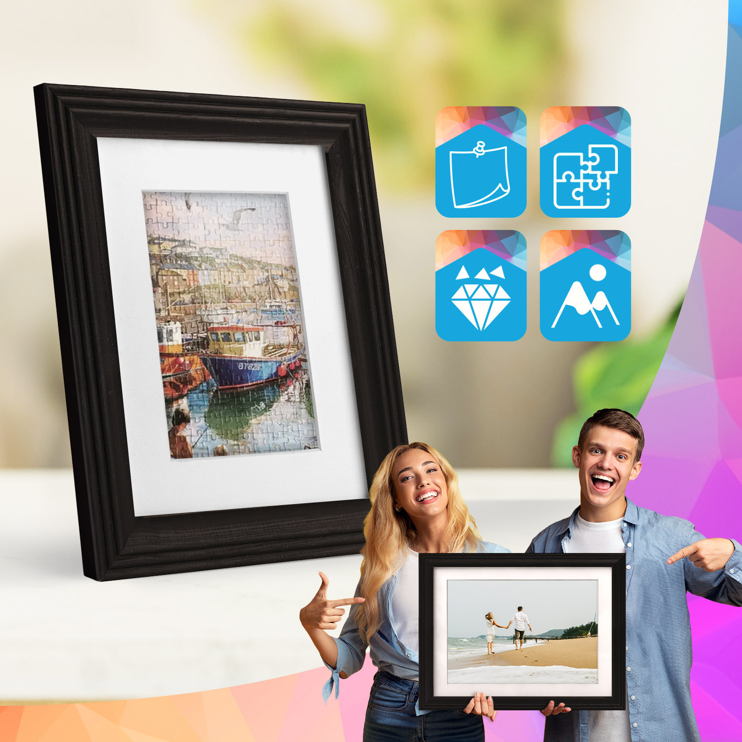 Rámečky jsou určeny k montáži na zeď. Díky pečlivě vyrobenému frézovanému profilu celek pevně přilne k povrchu a prezentované motivy zůstávají ústředním prvkem dekorace. Sada se perfektně hodí do domácnosti, kanceláře i na stěny galerií.