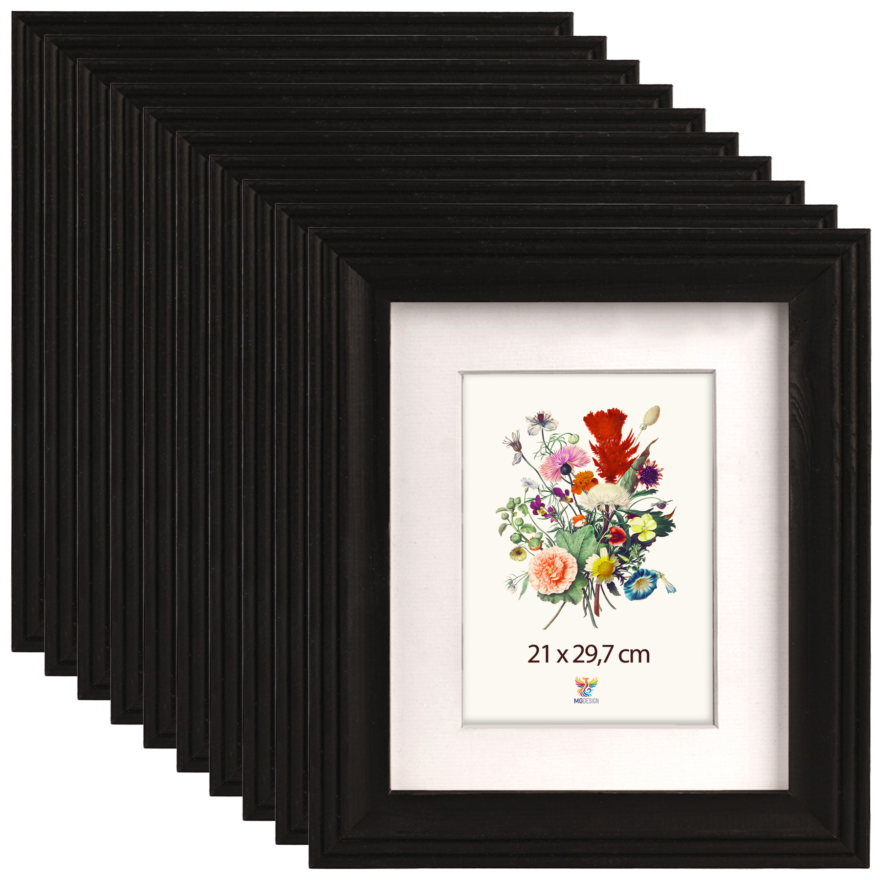 Sada 10 ks frézovaných rámečků A4 21 x 29,7 cm v černé barvě