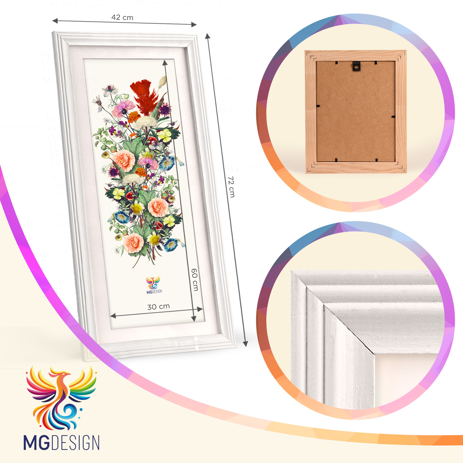 Rámečky jsou určeny k montáži na zeď. Díky pečlivě vyrobenému frézovanému profilu celek pevně přilne k povrchu a prezentované motivy zůstávají ústředním prvkem dekorace. Sada se perfektně hodí do domácnosti, kanceláře i na stěny galerií.