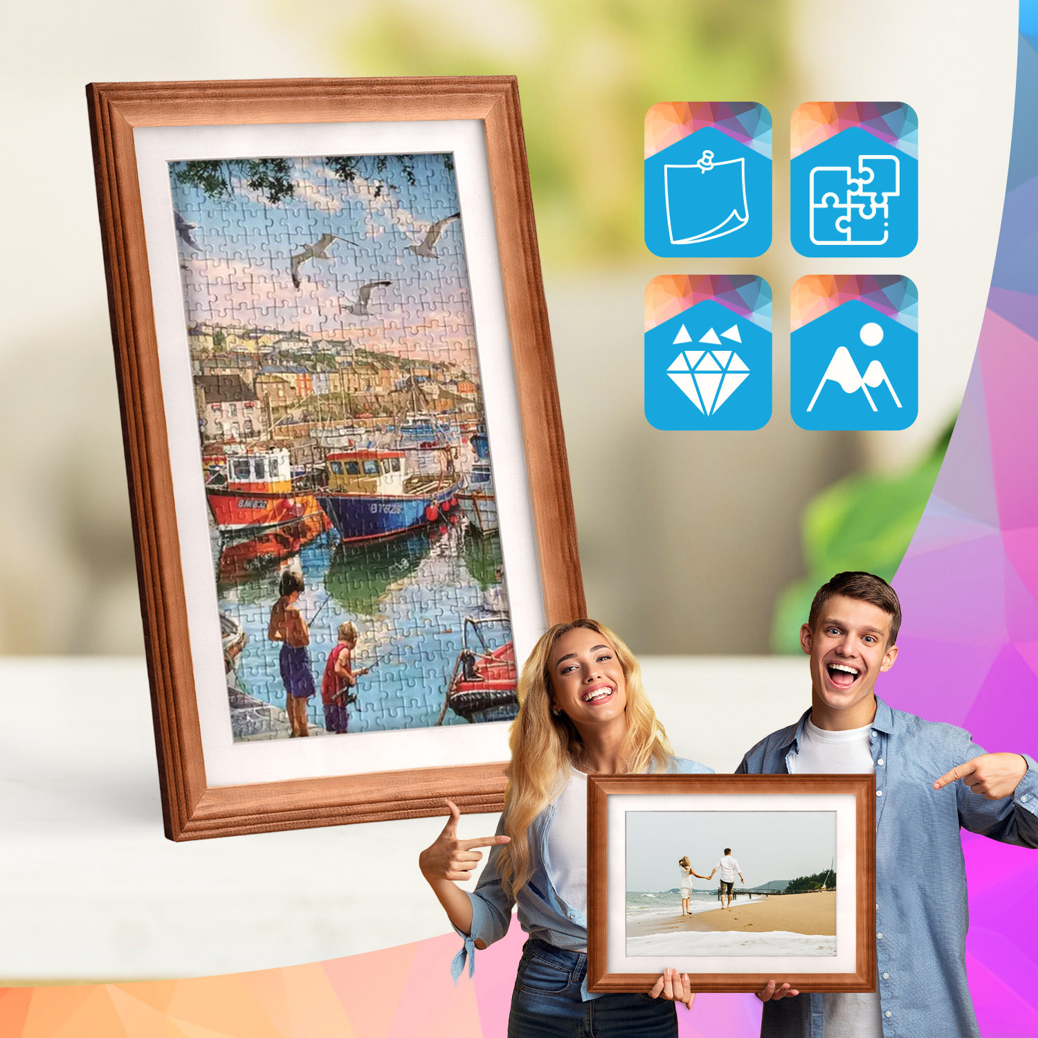 Rámečky jsou určeny k montáži na zeď. Díky pečlivě vyrobenému frézovanému profilu celek pevně přilne k povrchu a prezentované motivy zůstávají ústředním prvkem dekorace. Sada se perfektně hodí do domácnosti, kanceláře i na stěny galerií.