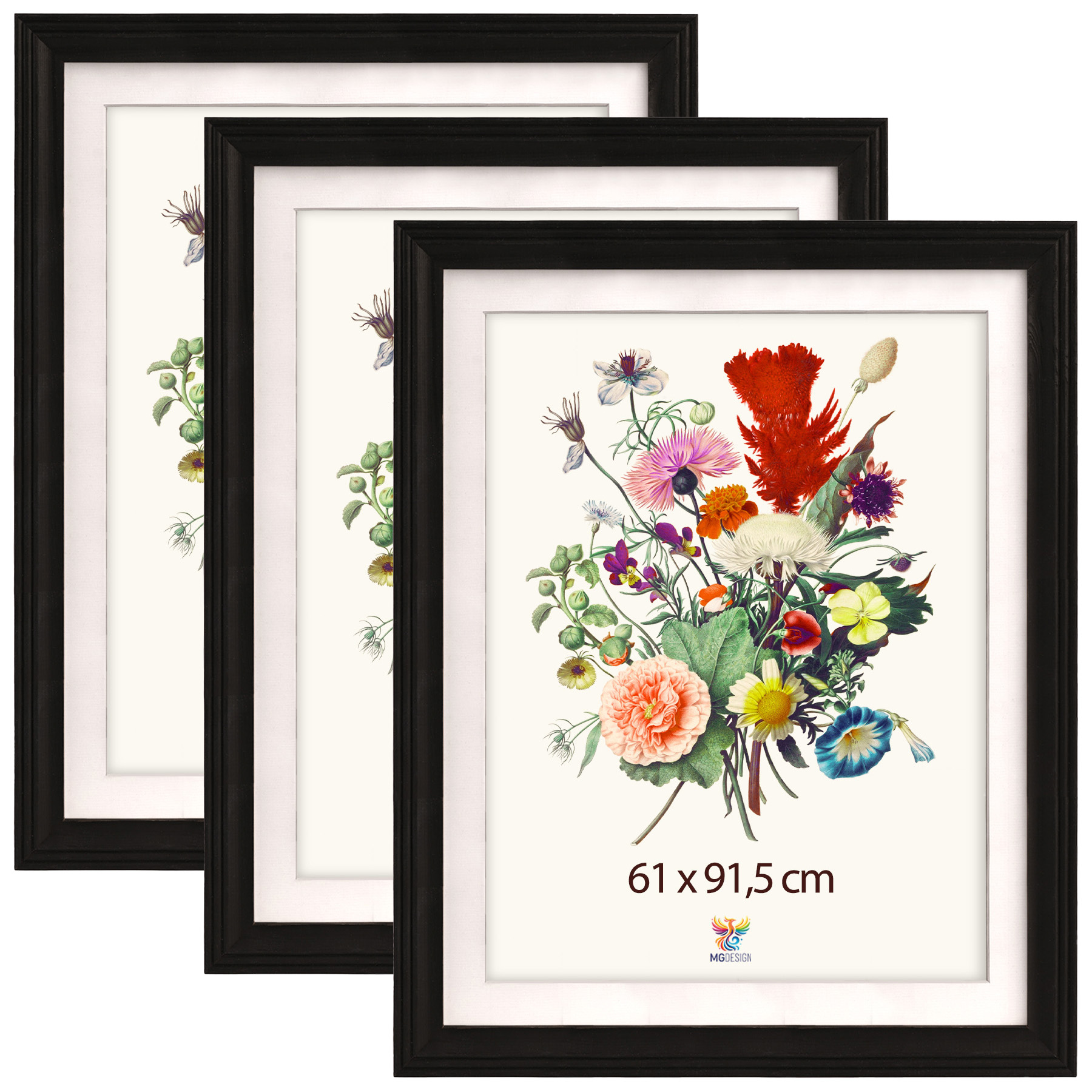 Sada 3 ks frézovaných rámečků 61 x 91,5 cm v černé barvě
