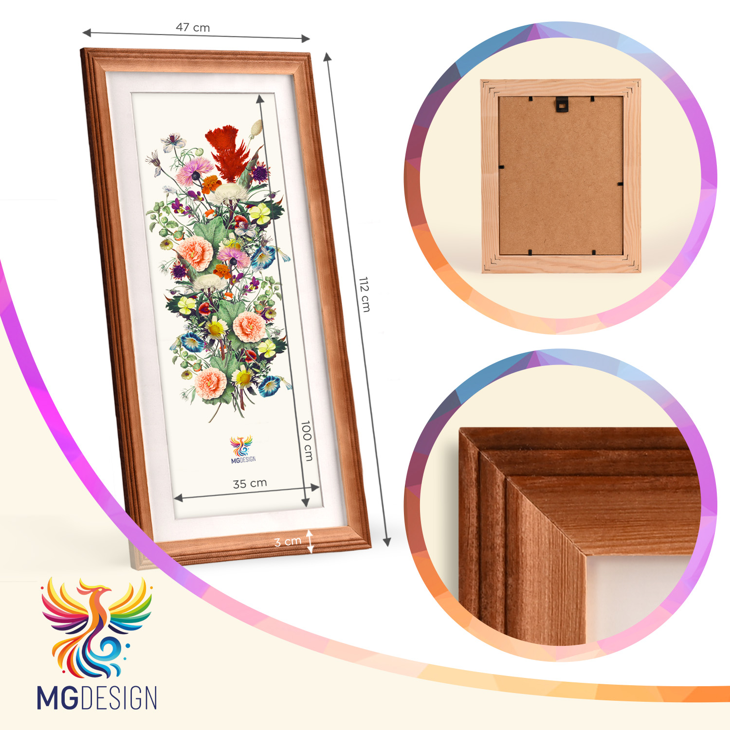 Rámečky jsou určeny k montáži na zeď. Díky pečlivě vyrobenému frézovanému profilu celek pevně přilne k povrchu a prezentované motivy zůstávají ústředním prvkem dekorace. Sada se perfektně hodí do domácnosti, kanceláře i na stěny galerií.