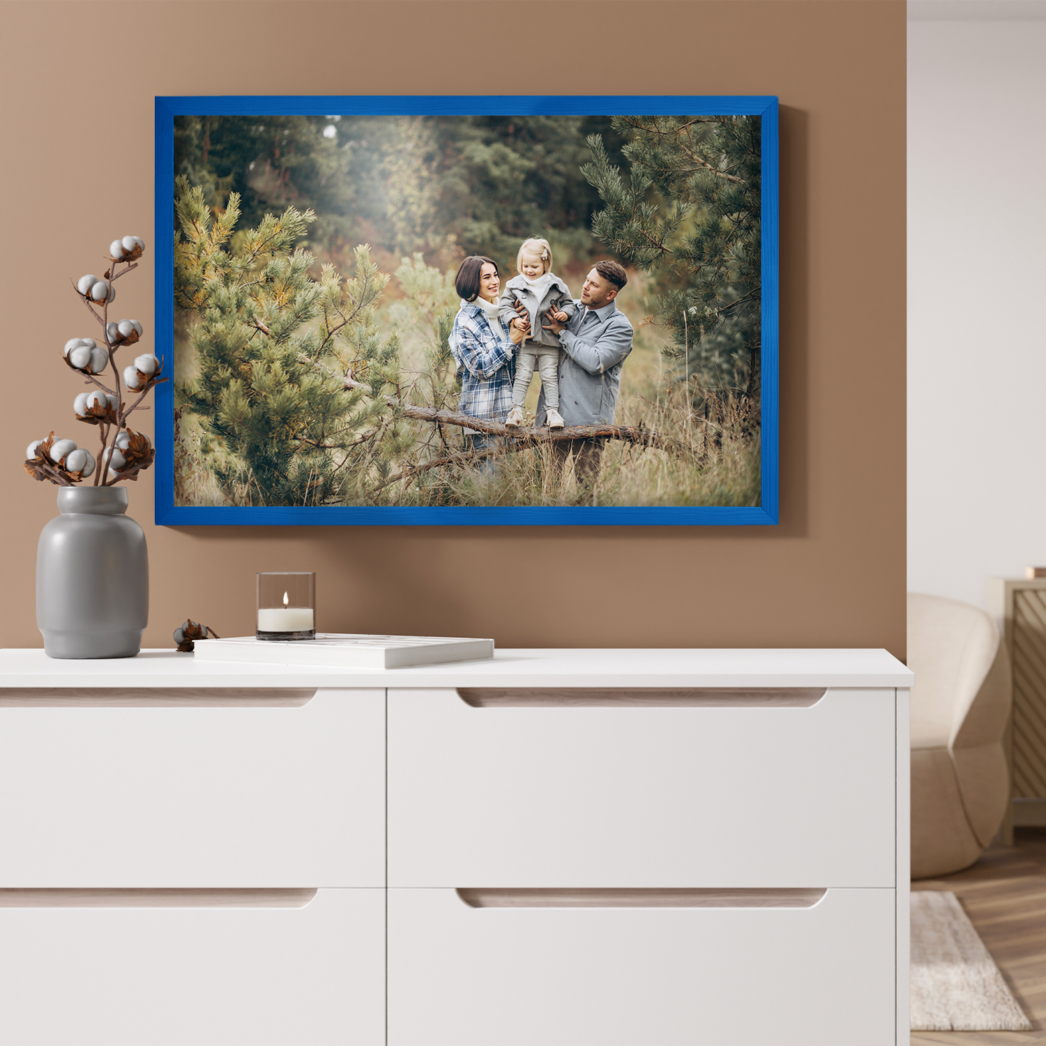 Rámy lze vystavit jak na nábytku, tak na zdi. Integrované závěsy umožňují rámy postavit nebo zavěsit svisle nebo vodorovně, takže je snadné přizpůsobit sestavu interiéru.