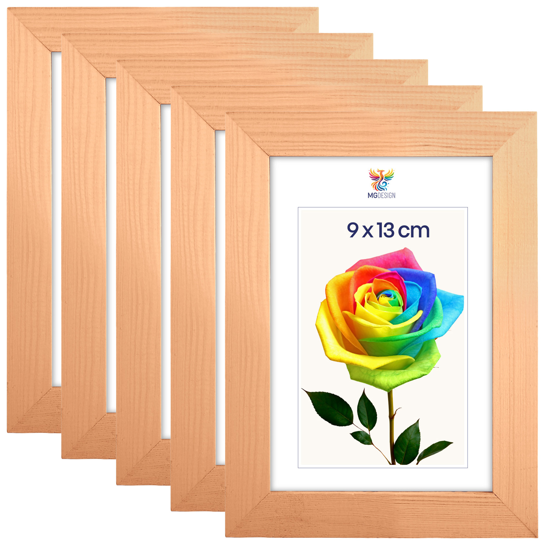 Sada 5 ks rámečků na fotografie 9 x 13 cm z přírodního dřeva