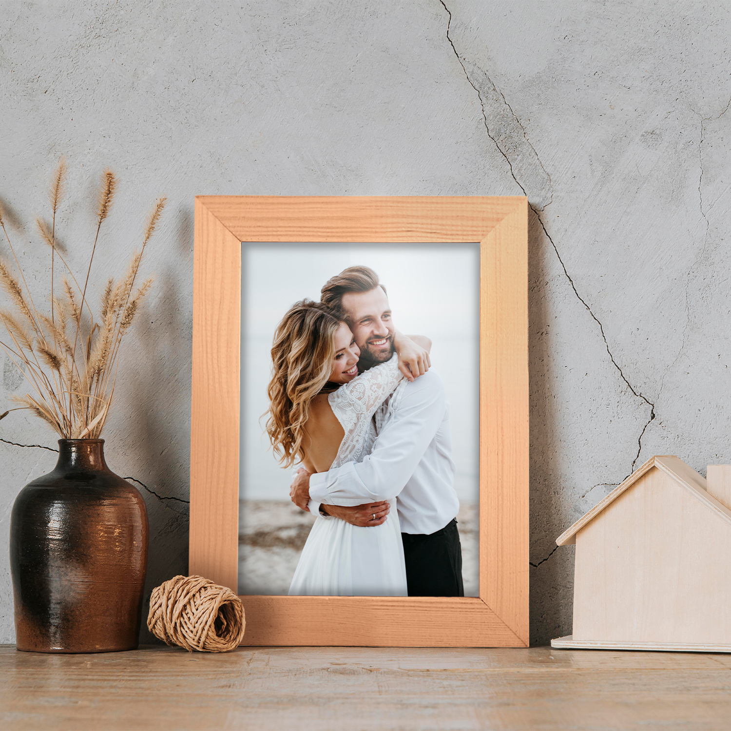 Sada dřevěných rámečků je estetickým a univerzálním řešením pro rámování fotografií, plakátů, grafik a dekorativních tisků. Klasický profil rámečků dodává celé kompozici elegantní vzhled a zdůrazňuje prezentované motivy, přičemž zachovává soudržný a uspořádaný charakter aranžmá.