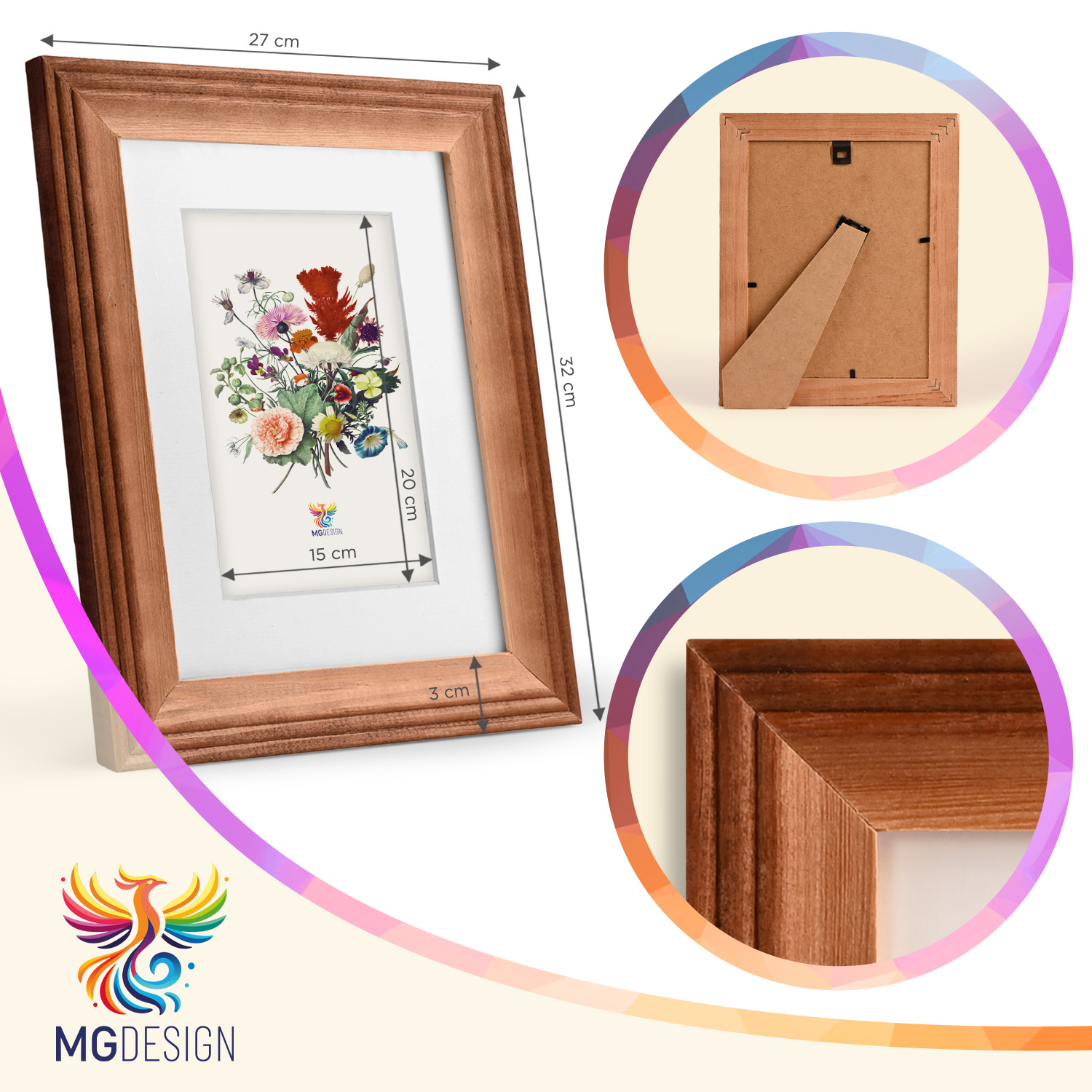 Sada frézovaných dřevěných rámečků je estetickým a jednotným řešením pro rámování fotografií, plakátů, grafiky a uměleckých tisků. Dekorativní, precizně zpracovaný profil rámečků dodává celé kompozici elegantní charakter a zdůrazňuje prezentované motivy, přičemž zachovává uspořádaný a harmonický vzhled aranžmá.