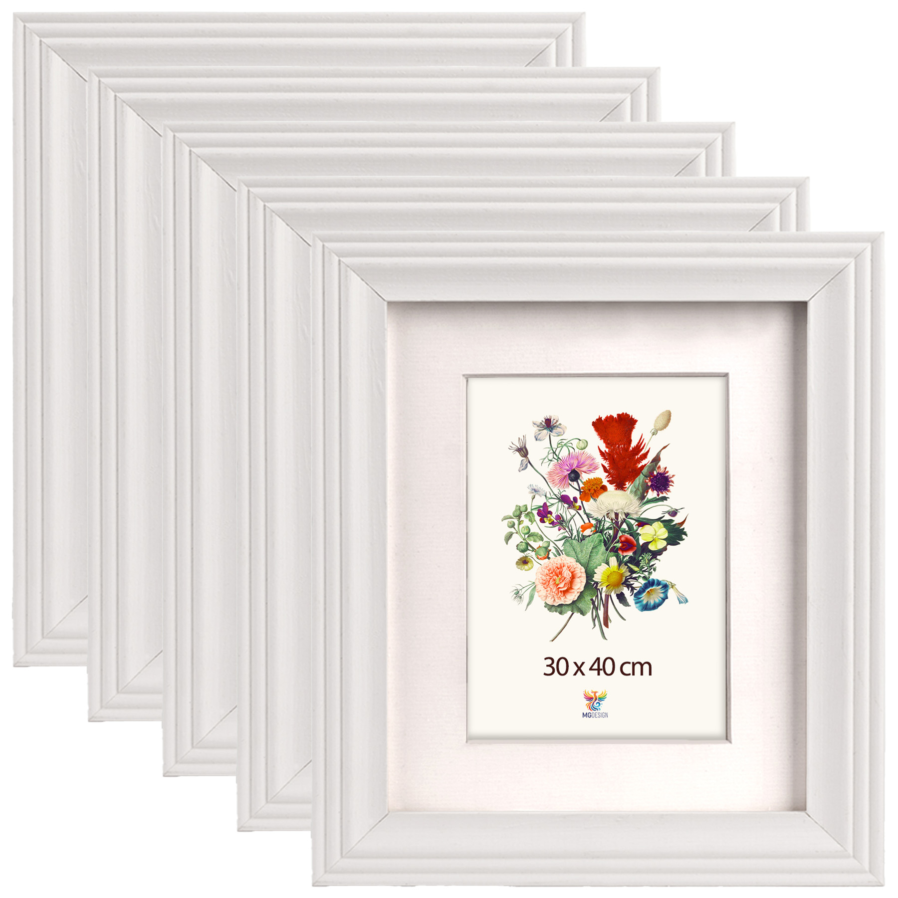 Sada 5 ks frézovaných rámečků 30 x 40 cm v bílé barvě