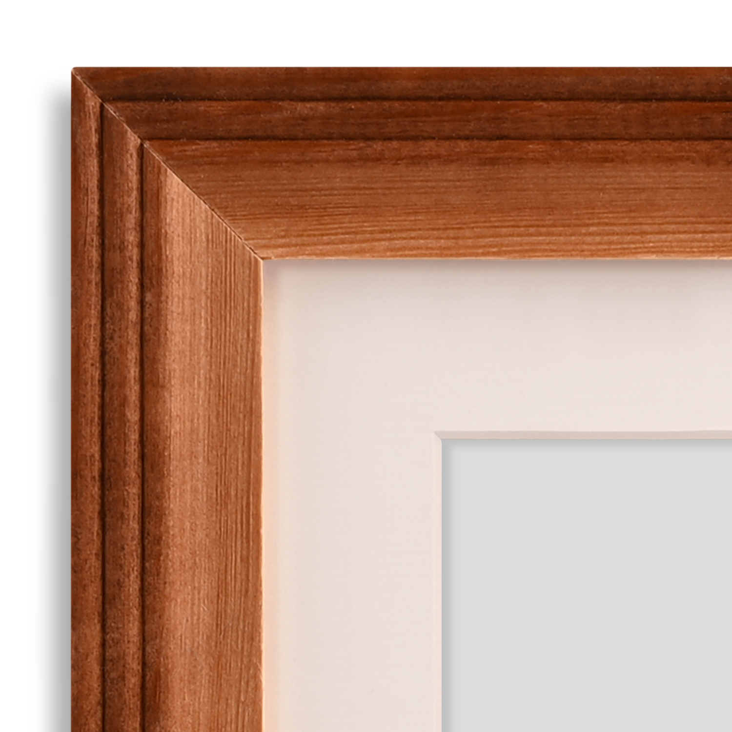 Rámy jsou vyrobeny z přírodního dřeva, pečlivě opracovaného tak, aby byla zachována viditelná struktura materiálu, která dodává celku přirozený a nadčasový charakter. Přední část rámů tvoří lehké a odolné plexisklo, které zajišťuje bezpečnost a dobrou viditelnost rámovaných děl ve srovnání s tradičním sklem.