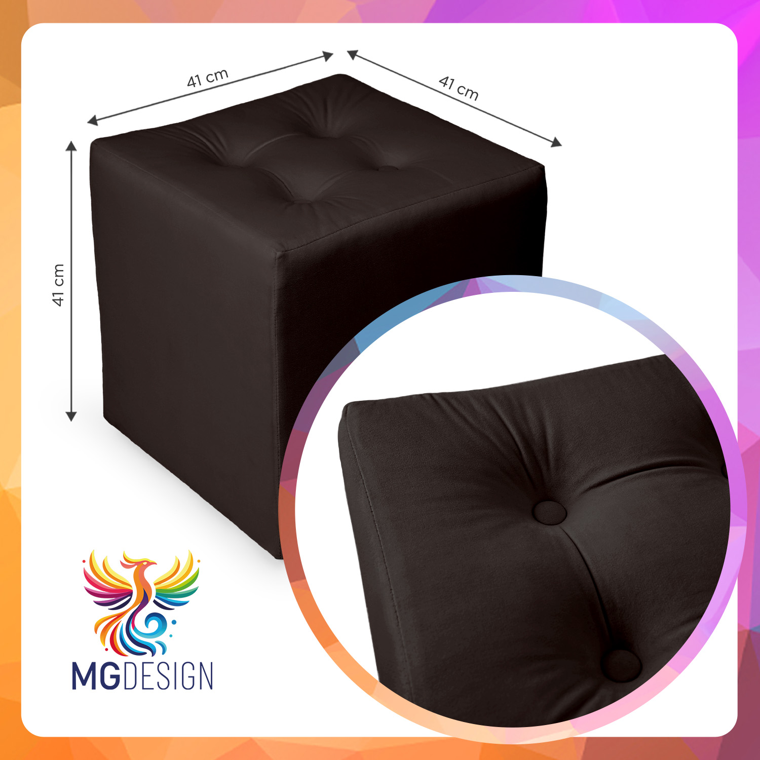 Tmavě hnědý velurový taburet 41 x 41 cm ve tvaru kostky