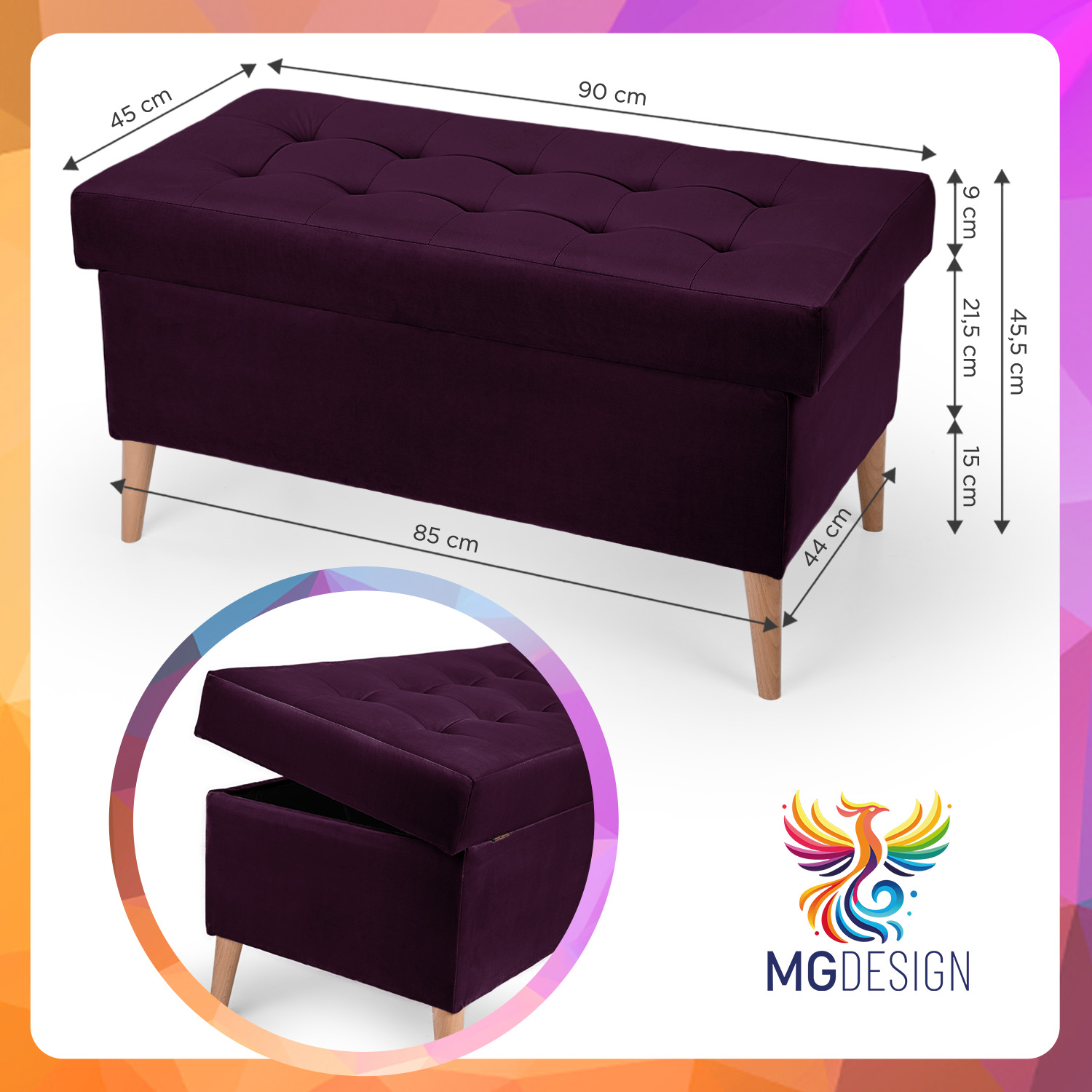 Funkční velurová pohovka s úložným prostorem je praktickým a stylovým doplňkem interiéru. Díky svým větším rozměrům poskytuje pohodlné místo k sezení pro jednu nebo dokonce dvě osoby a zároveň nabízí další úložný prostor.