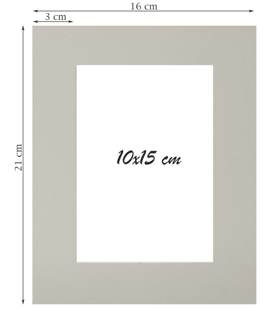 Světle šedá vložka paspartu o rozměrech 16 cm x 21 cm.