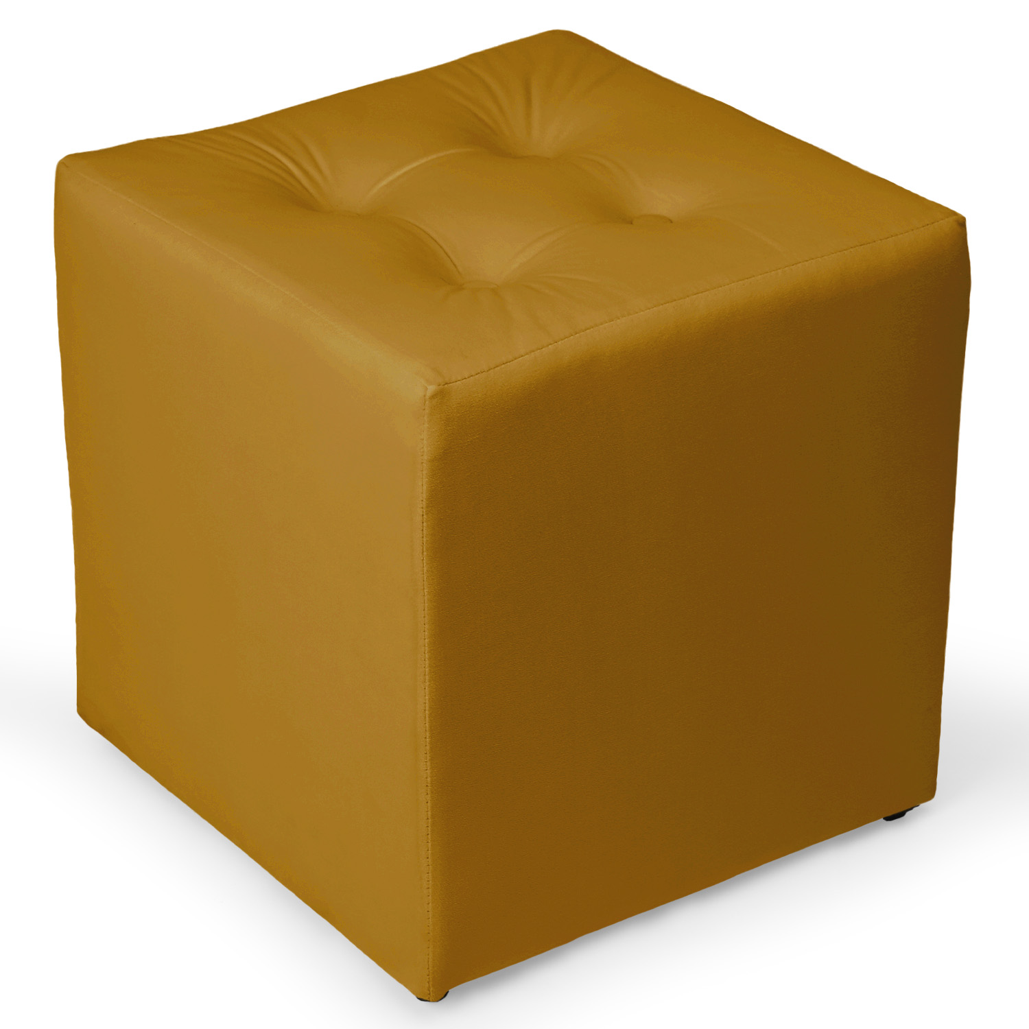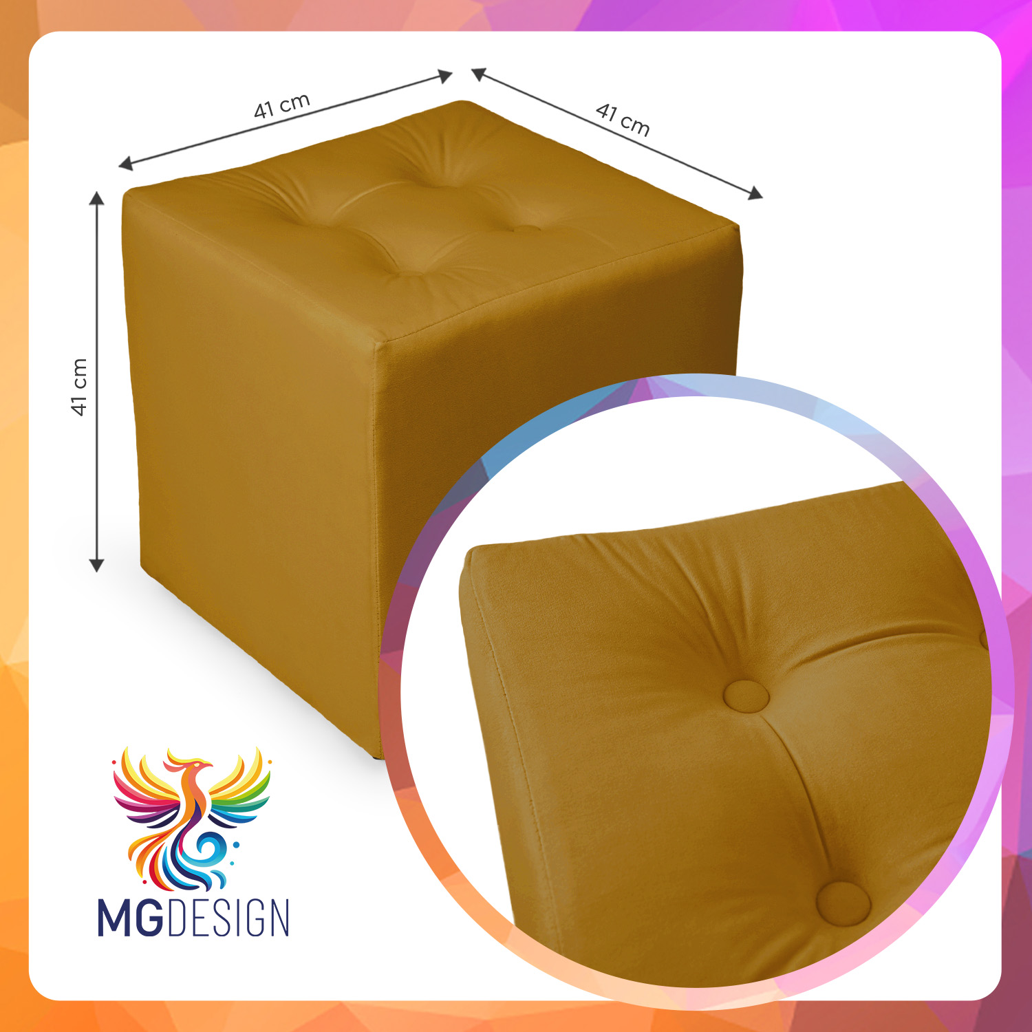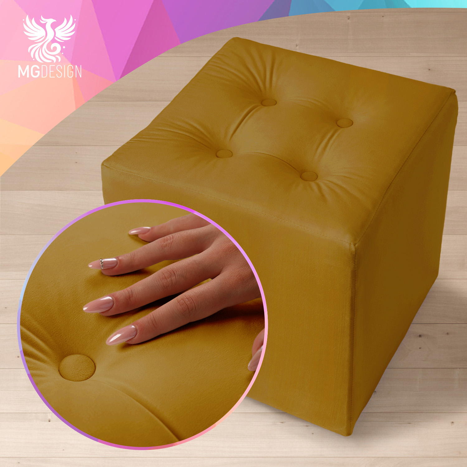 Žlutý velurový taburet 41 x 41 cm ve tvaru kostky